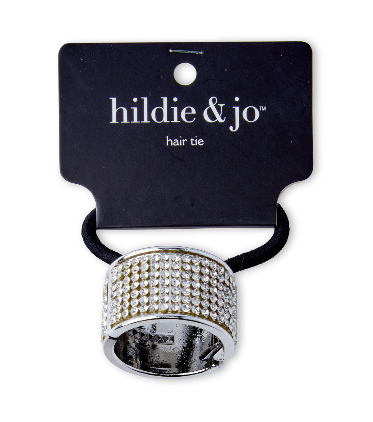 Glam up your ponytail with sassy accessories like the hildie & jo Black Ponytail Hair Tie with Silver Cuff-Crystals. Striking in looks, this ponytail charm is encrusted with clear crystals and features black elastic. Wear this silver round cuff on a little black dress to create an eye-catching impression.