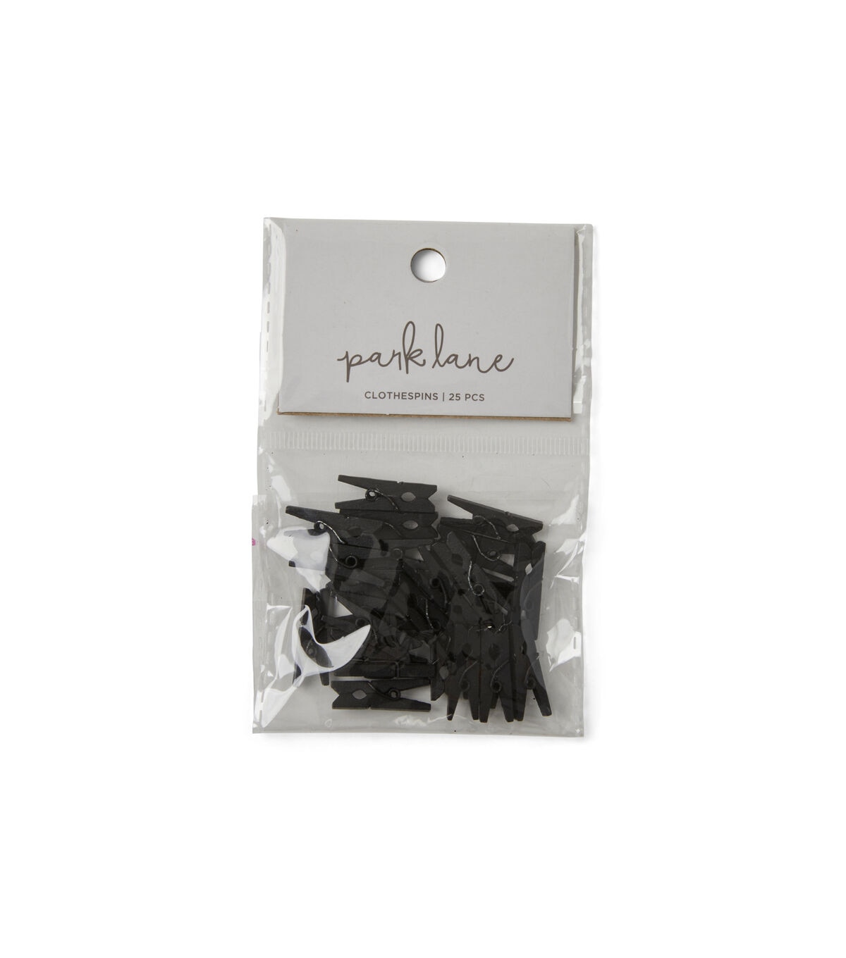 Crafting will be fun with the Park Lane Mini Wooden Clothespins - Black. This pack contains 25 mini wooden clothespins sporting a black shade. Your kids can color them in vibrant hues and use them to display Christmas cards or photos on a string in their room. They can also embellish these clothespins with washi tapes and add them to a DIY wreath.