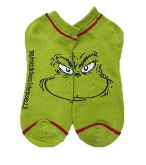 The Size 5 to 10 Grinch Face Ankle Socks will make a unique addition to your sock collection. Each of these ankle socks sports one half of the face of the Grinch. They display a green shade and red lines on the toes and ankles. Wear them with a green dress and Santa hat, and you’re going to make heads turn at the next Christmas party.