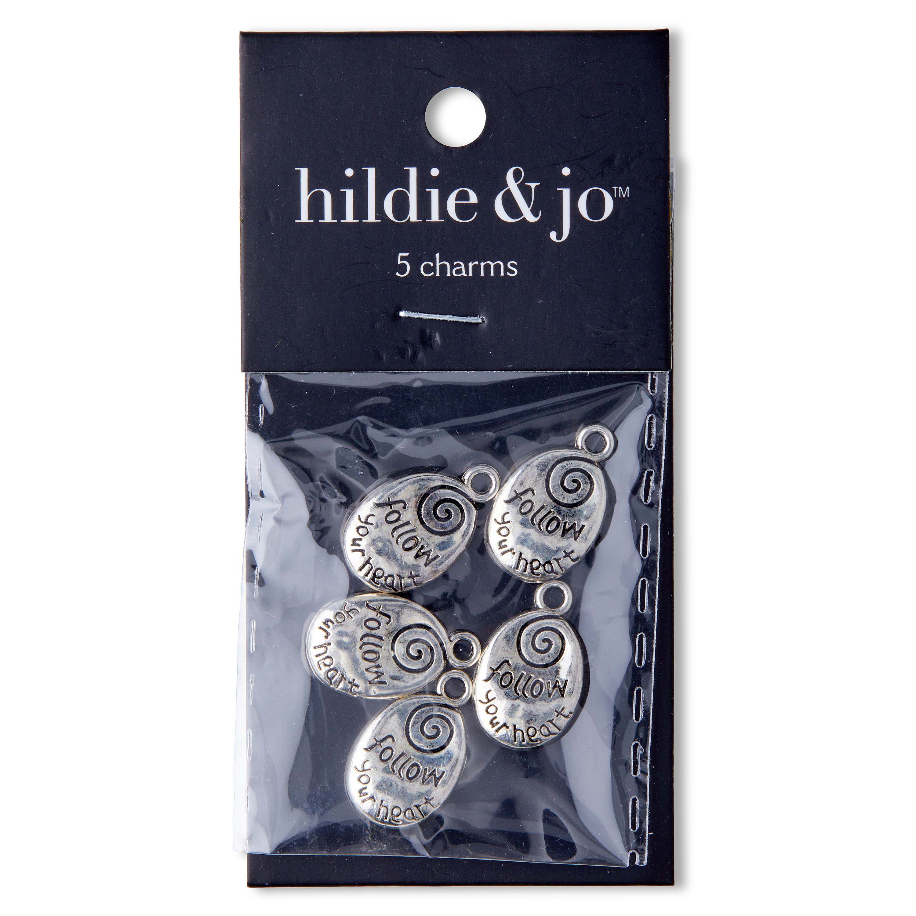 • 1" Silver Follow Your Heart Cast Metal Charms 5pk by hildie & jo