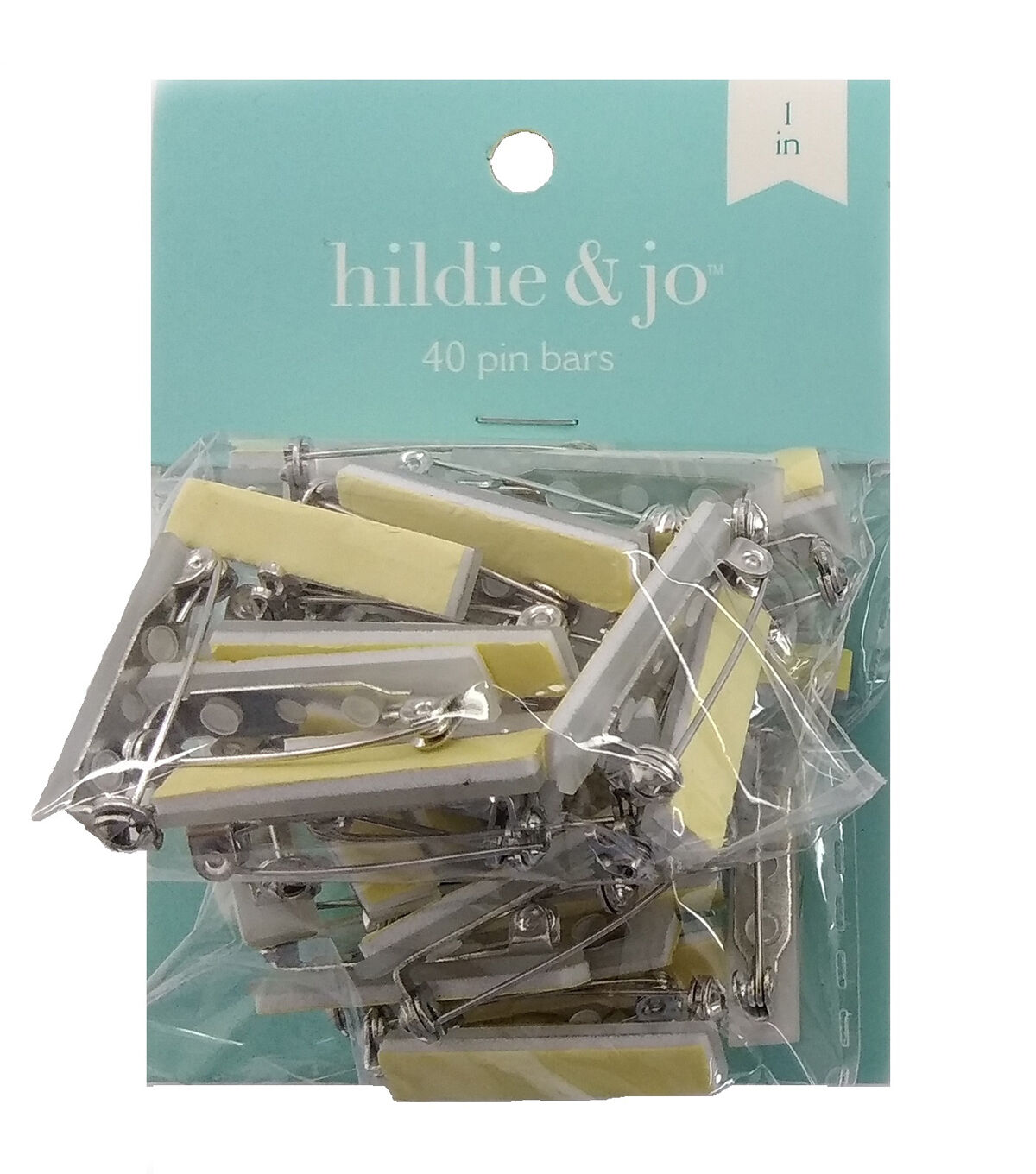 Use the hildie & jo Pin Bars with Adhesive Back-Silver for your next DIY project. These metal pins have a rolling locking clasp. The front has an adhesive that can be just peeled off the paper for easy sticking. The pin bars are great for jewelry making, name tags, ribbons and more. This pack comes with 40 pieces.