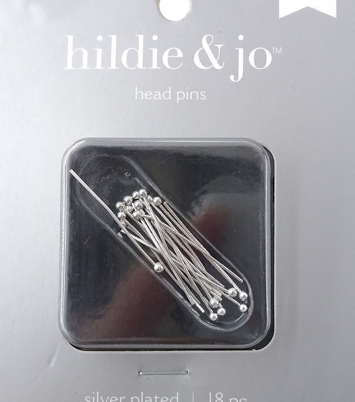 hildie & jo Metal Head Pins plated in silver. The head pins feature a ball design. There is one length of 1 inch. 18 pieces.