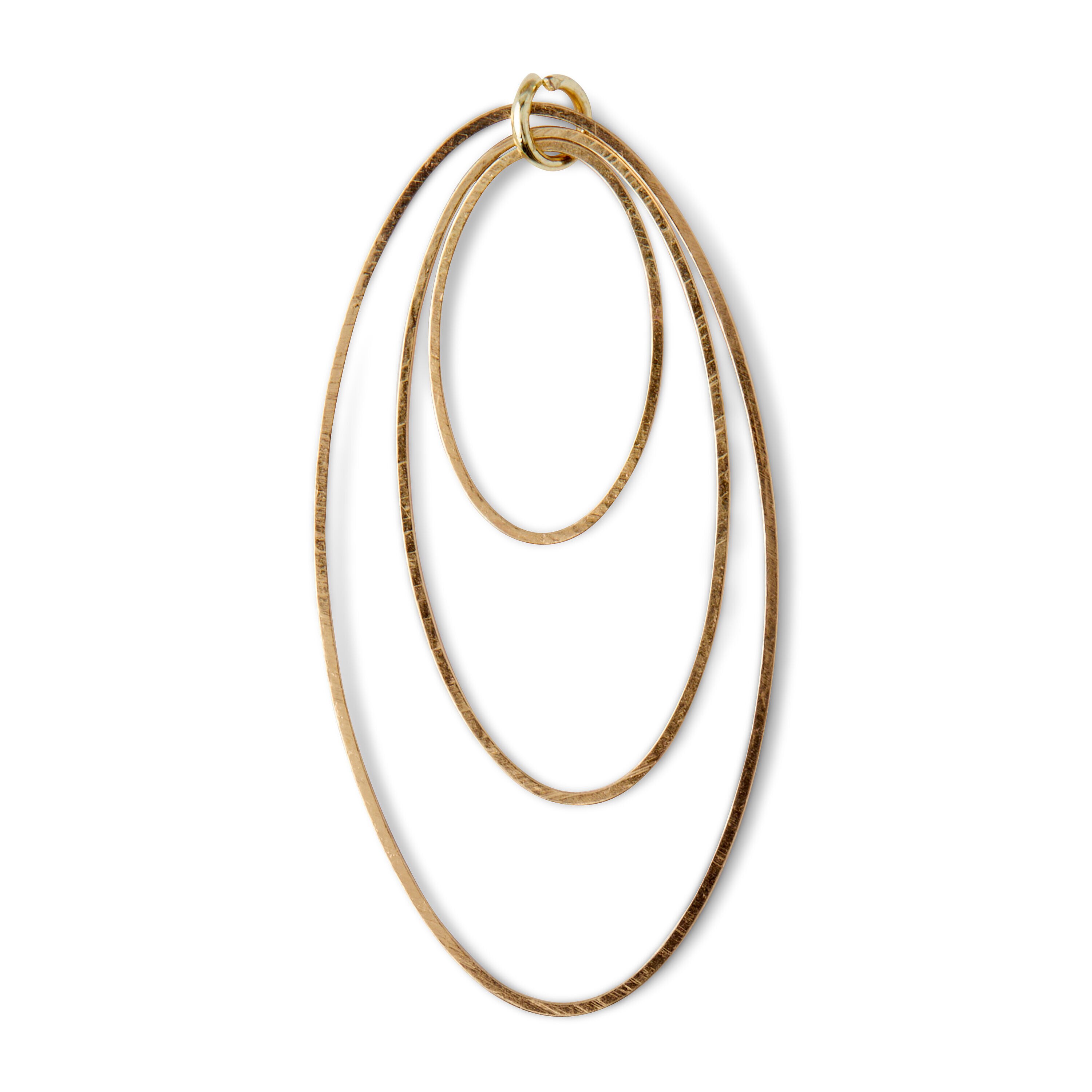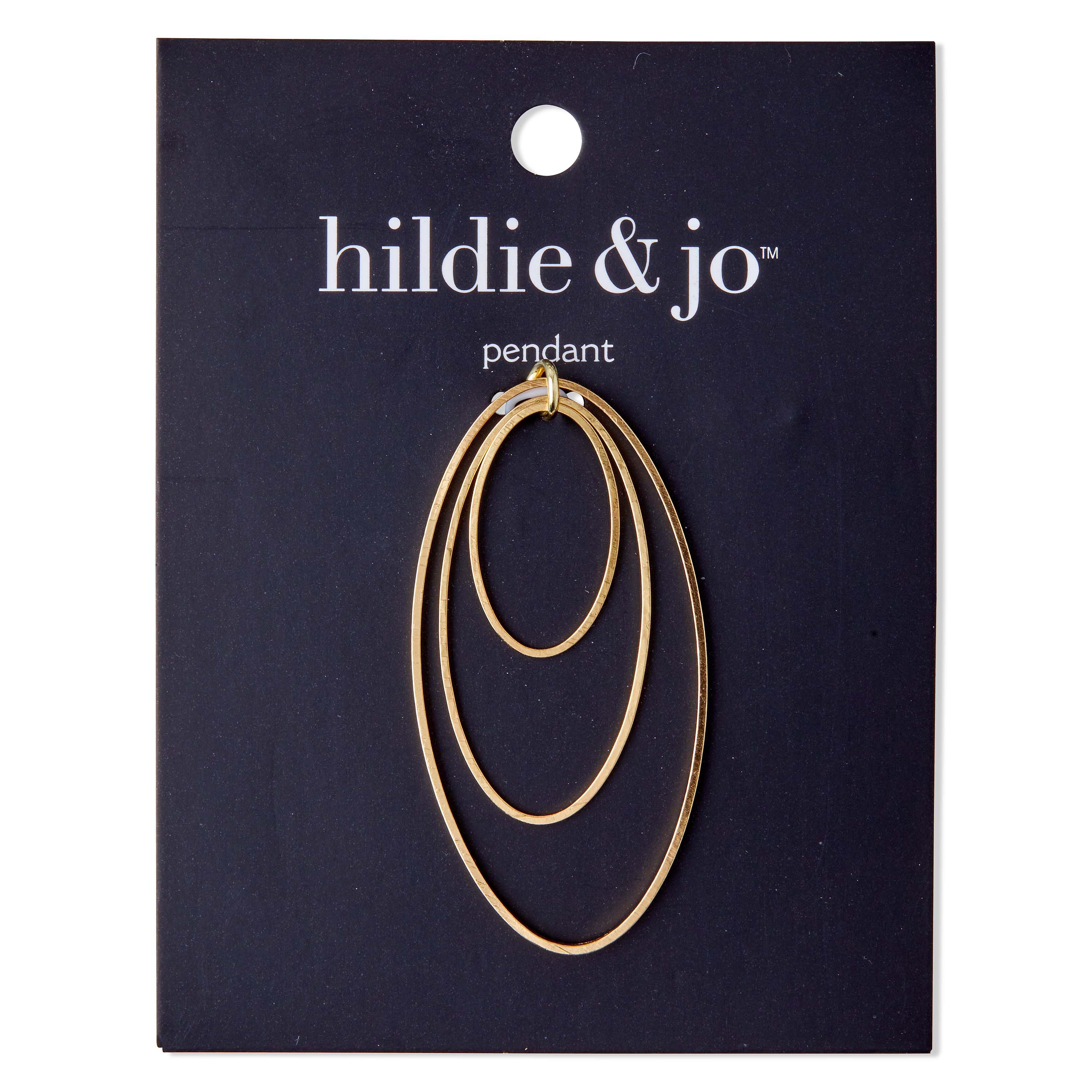 Lend a personalized touch to your DIY jewelry or craft projects using this hildie & jo Metal Open Ovals Pendant-Gold. This gold pendant comprises of three smooth gold open ovals that vary in degrees of length, width and height. They are attached at the top with a jump ring. Add this pendant to bracelets, necklaces, keychains and more.