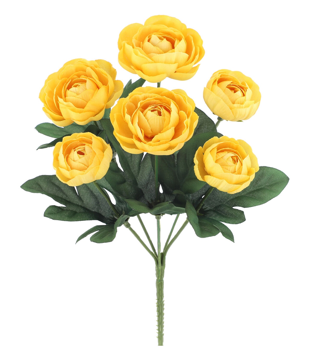 Brighten up your seasonal decor with the Spring Yellow Ranunculus Bush by Bloom Room. The lovely combination of yellow ranunculus blooms and lush green leaves makes this faux floral bush a treat for the eyes. You can use it to decorate the coffee table, mantel or a floating shelf. Team it with a white berry bush, sold separately, for added visual flair.
