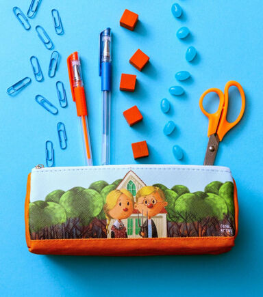 - Artistic Inspiration: Take inspiration and creativity wherever you go with this vibrant fine art pencil case. Featuring a whimsical interpretation of Grant Wood’s iconic painting, American Gothic, it's a perfect blend of art and functionality.