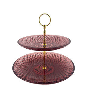 The Easter Dark Pink Glass 2 Tiered Serving Tray by Place & Time will make the perfect addition to your dinner tablescape. This two-tier glass serving tray flaunts a dark pink shade with a textured finish. It comes with a gold-toned handle on top for visual appeal. Serve appetizers, finger foods and more with it. You can also use this tray to decorate a table or ledge.