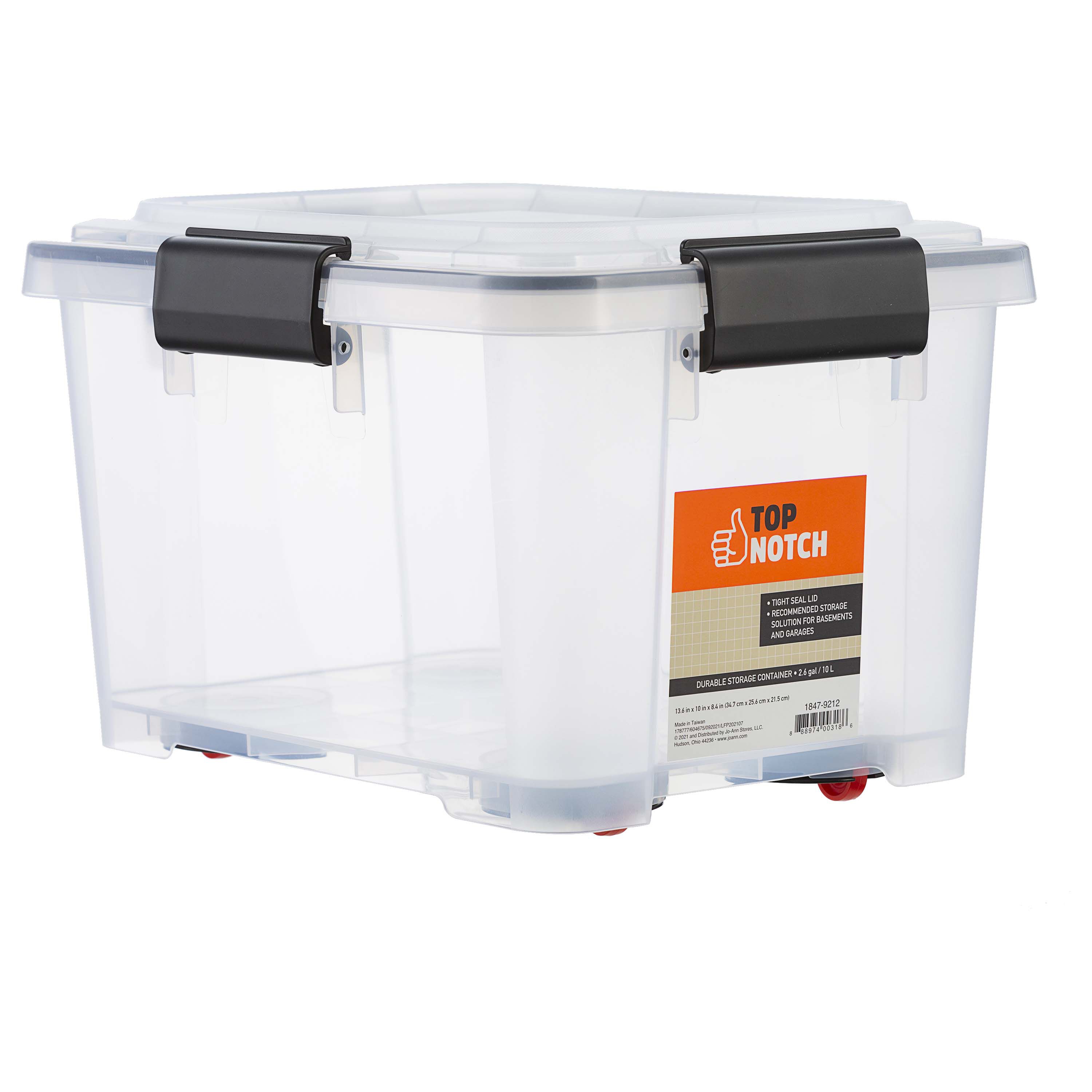 The Top Notch Plastic Durable Storage Box with Lid will help you keep your linen, stationery, office files and more organized. This plastic storage box is clear and comes with a tight-seal lid to keep the contents undamaged and safe from dust. It is designed with wheels for easy portability. You can use it at home or office.