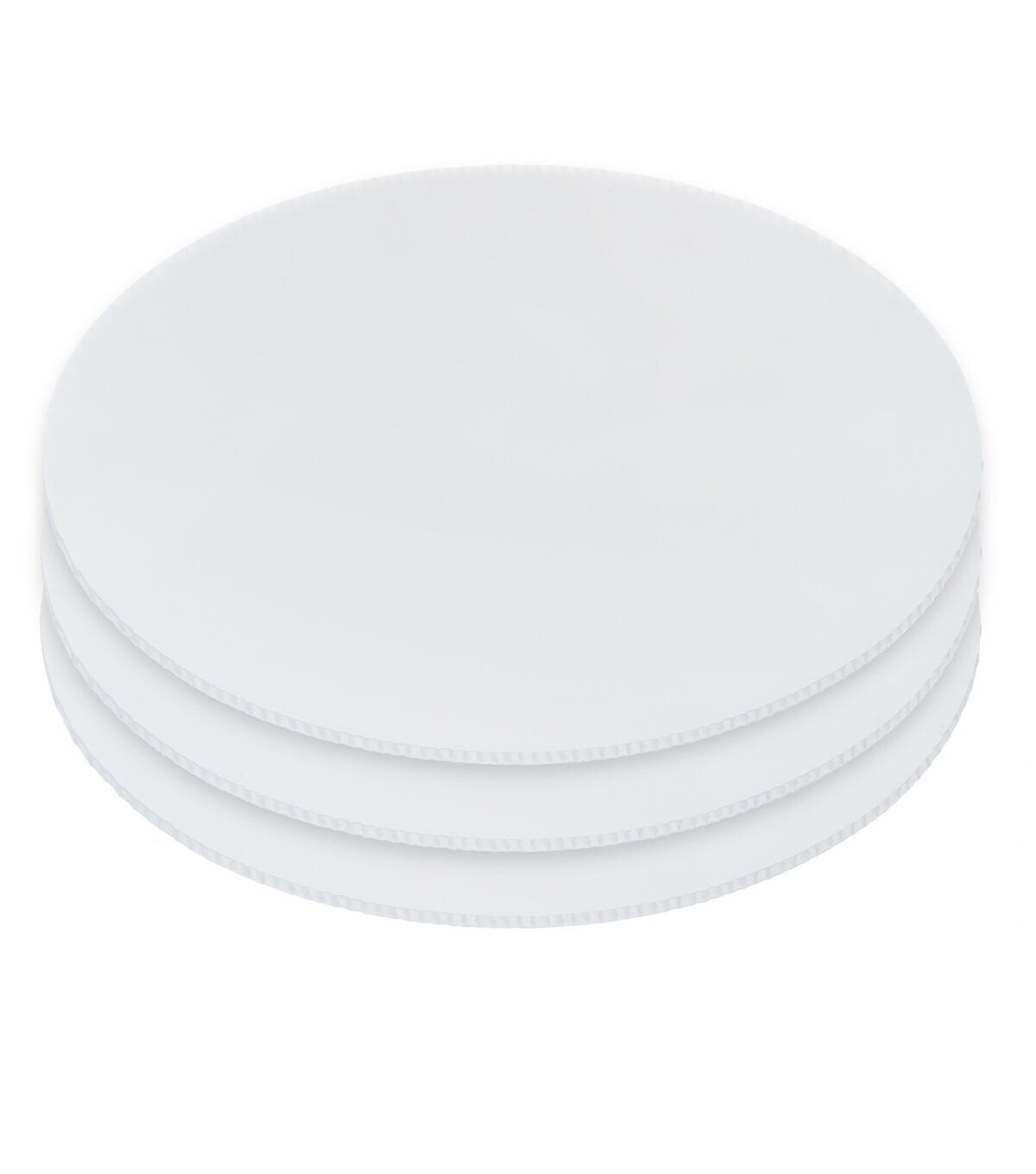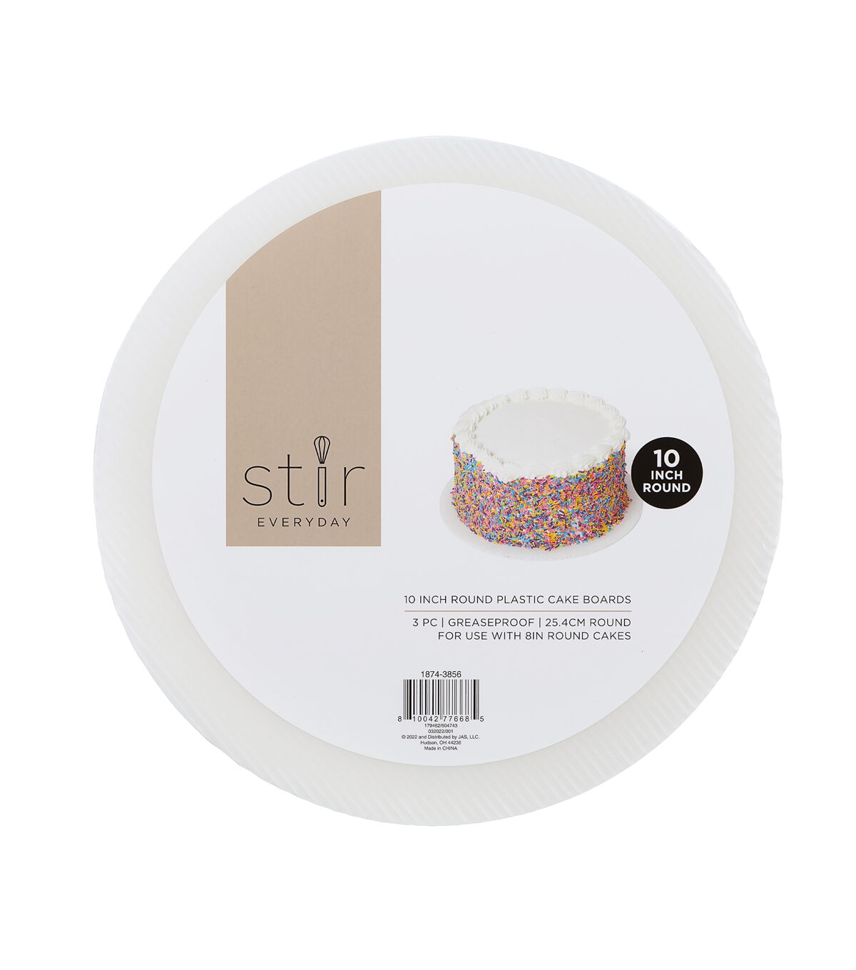 Displaying your homemade cakes will be a breeze with the STIR Everyday Round Plastic Cake Boards. They are made of plastic and will be ideal for use with 8-inch round cakes. You can use these sturdy plastic cake boards to serve baked goods at a party, baby shower and more.