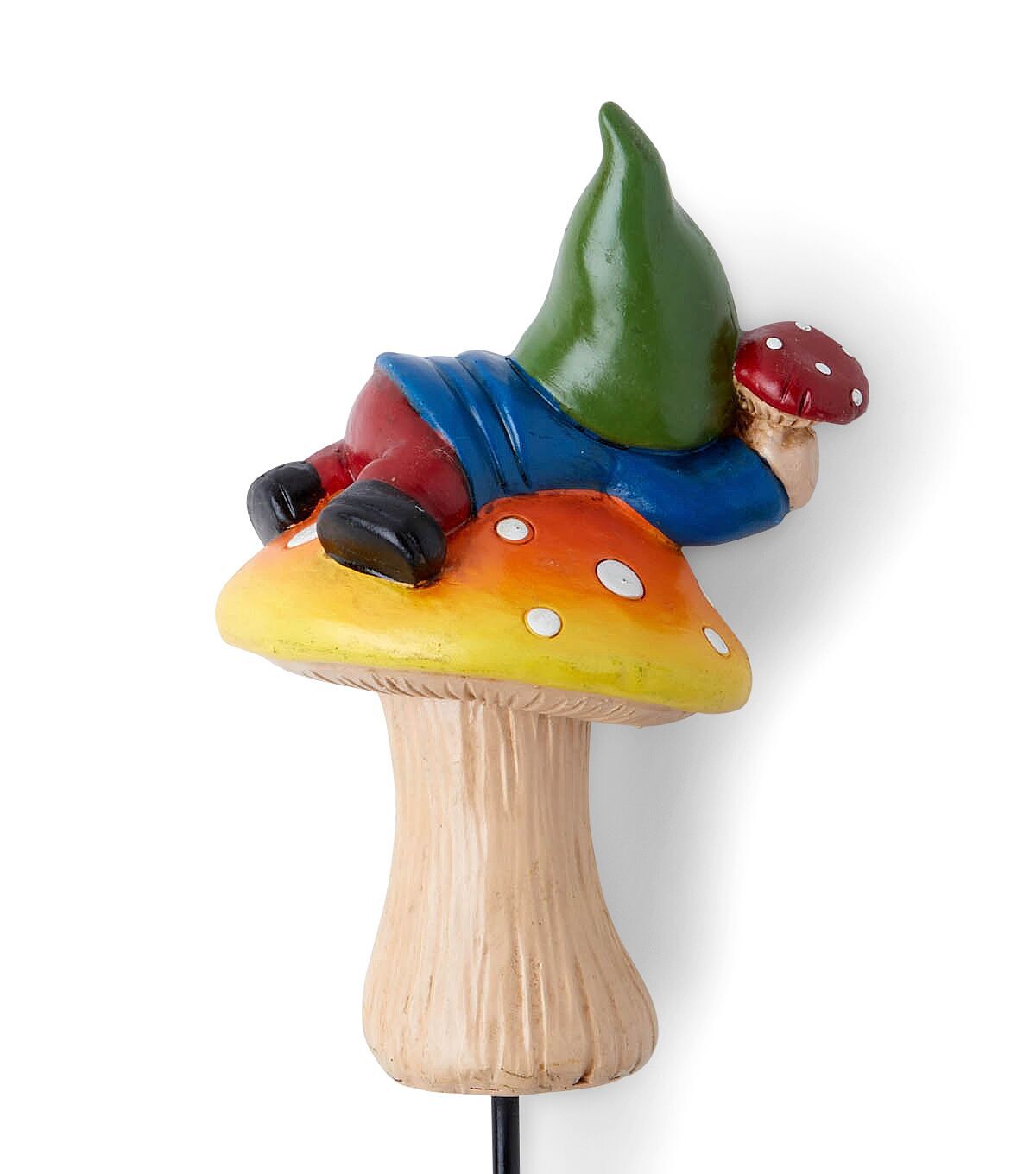 Bring some springtime charm to your yard with the Spring Gnome on Yellow Mushroom Yard Stake by Place & Time. It is designed with an accent that resembles a gnome resting on a mushroom while holding a small mushroom in his hand. This decorative yard stake is sure to liven up your outdoor space. Use it as a standalone piece or pair it with other seasonal stakes, sold separately, for enhanced visual appeal.