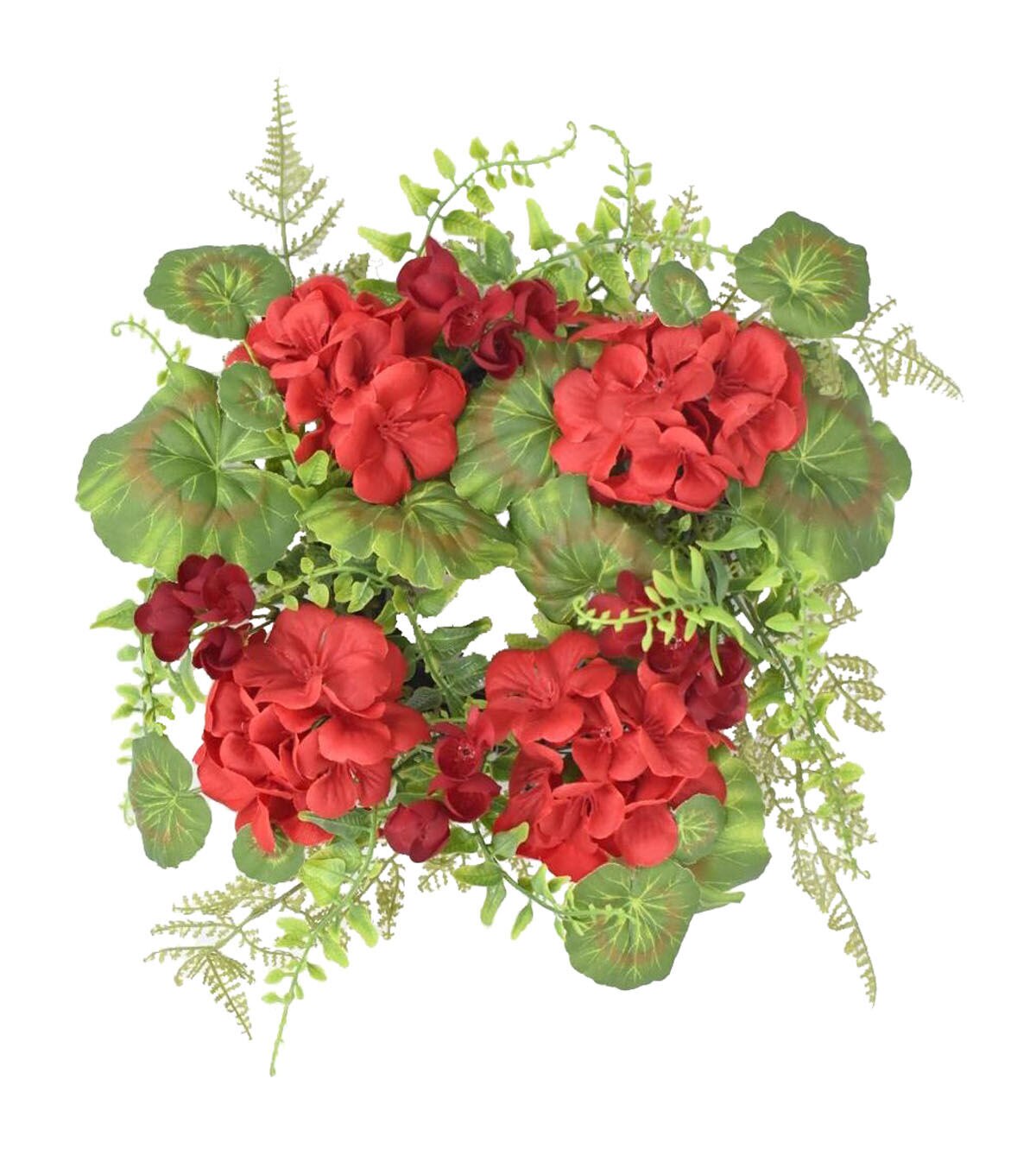 Make your seasonal decorations more interesting using the Spring Red Geranium & Fern Mini Wreath by Bloom Room. It is designed with faux geranium blooms in red, fern fronds and other leaves. You can pair this mini wreath with a berry garland, sold separately, and display them above the mantel or on the foyer wall.