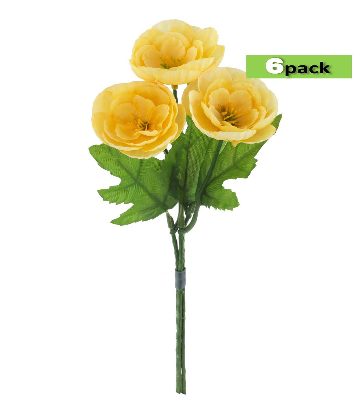 Bring the Beauty of Spring into Your Home with the 10" Spring Yellow Ranunculus Pick 6pk by Bloom Room
