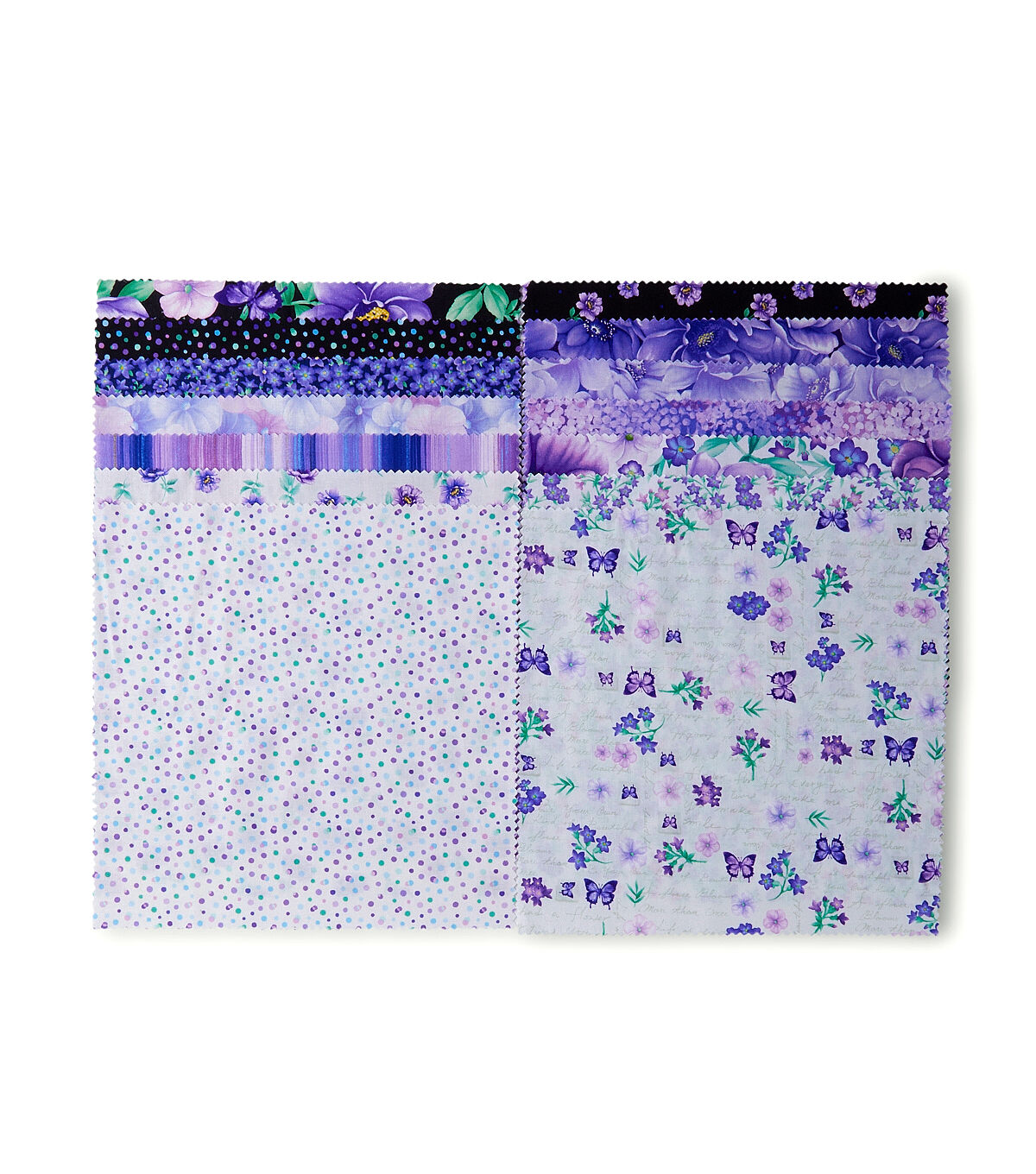 The beautiful purple floral design is sure to catch the eye of anyone who sees it, and the soft cotton material will make your finished product feel luxurious and comfortable. Whether you're a seasoned crafter or just starting out, these fabric squares are a must-have in your collection.