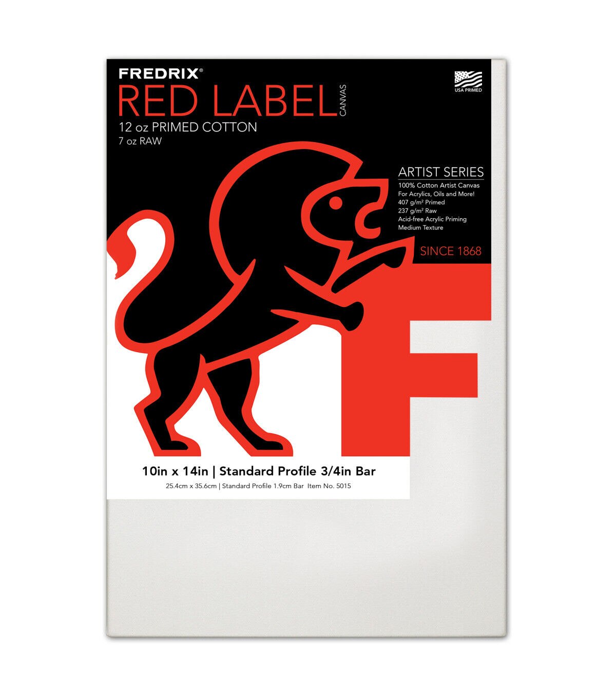 Red Label Canvas is made with superior quality, medium texture, 100% cotton duck canvas #569 which is 12 oz. primed, 7 oz. raw. Double-primed just north of Atlanta, Georgia, with an acid-free acrylic titanium gesso for professional results. 152 years of experience stands behind this archival canvas. Stretched on kiln-dried stretcher bars and sourced from regional sustainable forests. A versatile option for oils, acrylics, water-soluble oils, paint markers, permanent markers, spray paints and alkyds. Available in two profiles: standard 3/4" profile and a gallery 1-3/8" profile.