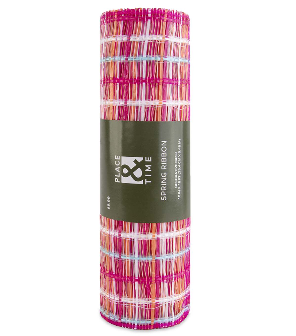 Get Creative with Place & Time's 10" x 18' Easter Pink Plaid Decorative Mesh
