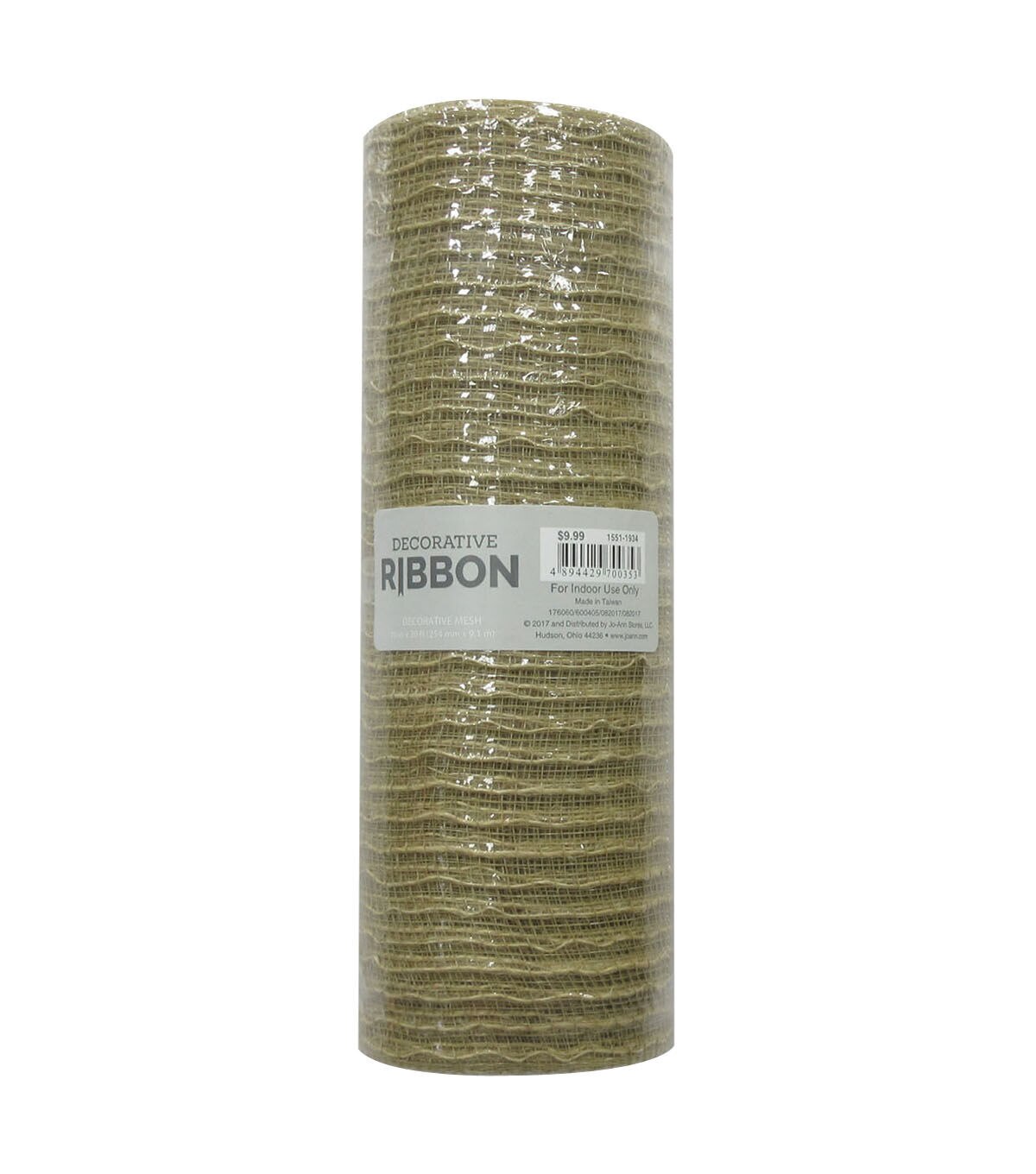 Use the Decorative Ribbon Metallic Deco Mesh-Natural Jute as a versatile embellishment in your craft and decor projects. It comes in a solid natural shade and is perfect for adding a unique touch to your garlands, gifts and decor accents. You can also create a stunning wreath by teaming this natural mesh with contrast-colored ribbons, sold separately.