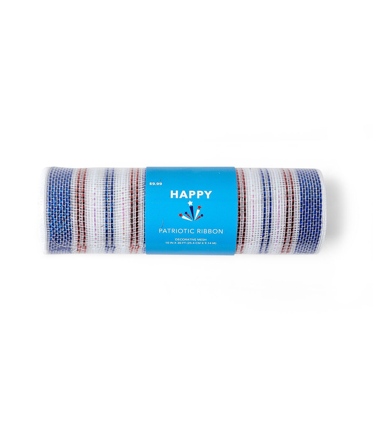 Looking for a way to make your home decor or craft projects stand out this 4th of July? Look no further than Happy's Patriotic 10" x 30' Americana Striped Metallic Decorative Mesh. This versatile mesh ribbon is perfect for gift baskets, bows, wreaths, and wrapping presents. Its bold red, white, and blue stripes with metallic accents will add a touch of patriotic flair to any project.