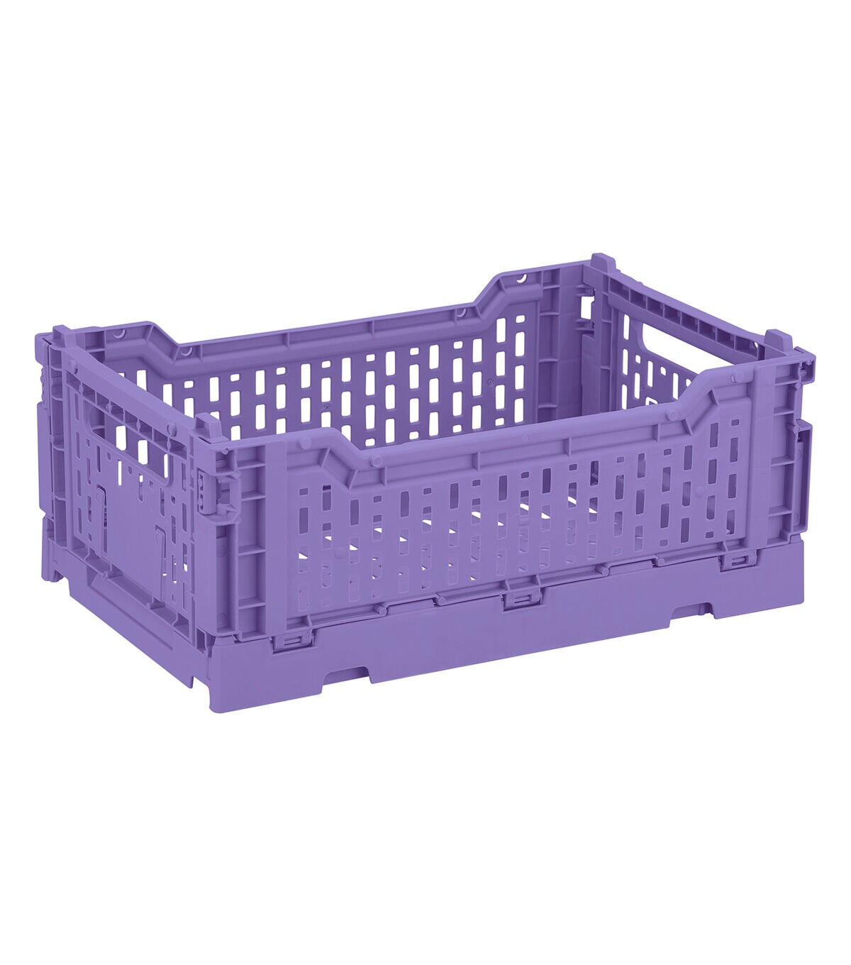 Keep your home or office organized with the Plastic Collapsible Storage Crate by Top Notch. This open crate can be collapsed and stored easily when not in use. It includes cut-out side handles for easy carrying. You can use it for storing magazines, art supplies, files and more.