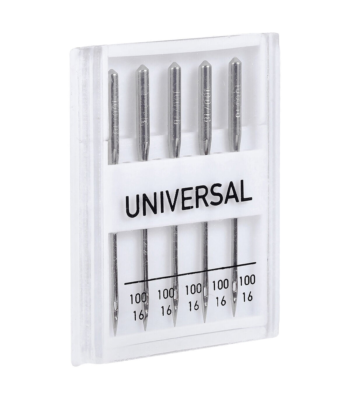 - Set of 5 universal sewing machine needles in size 100/16