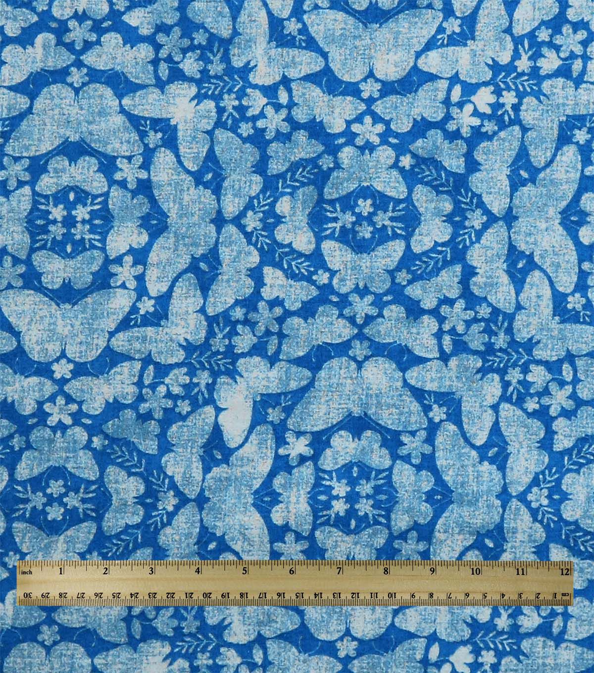 Get with 108" Blue Tonal Butterflies Blue Wide Flannel Fabric