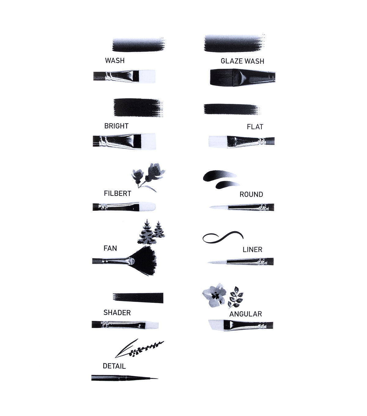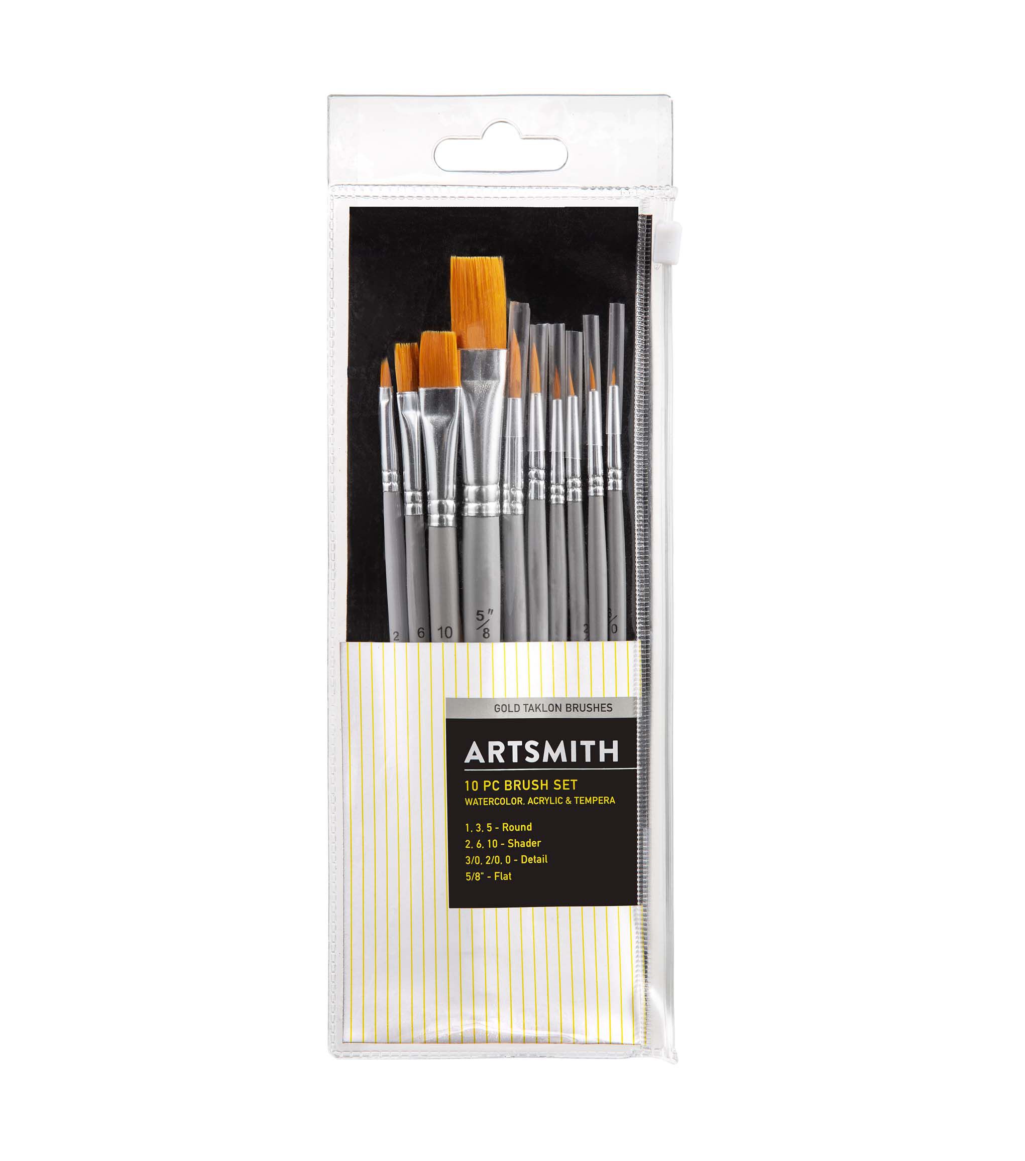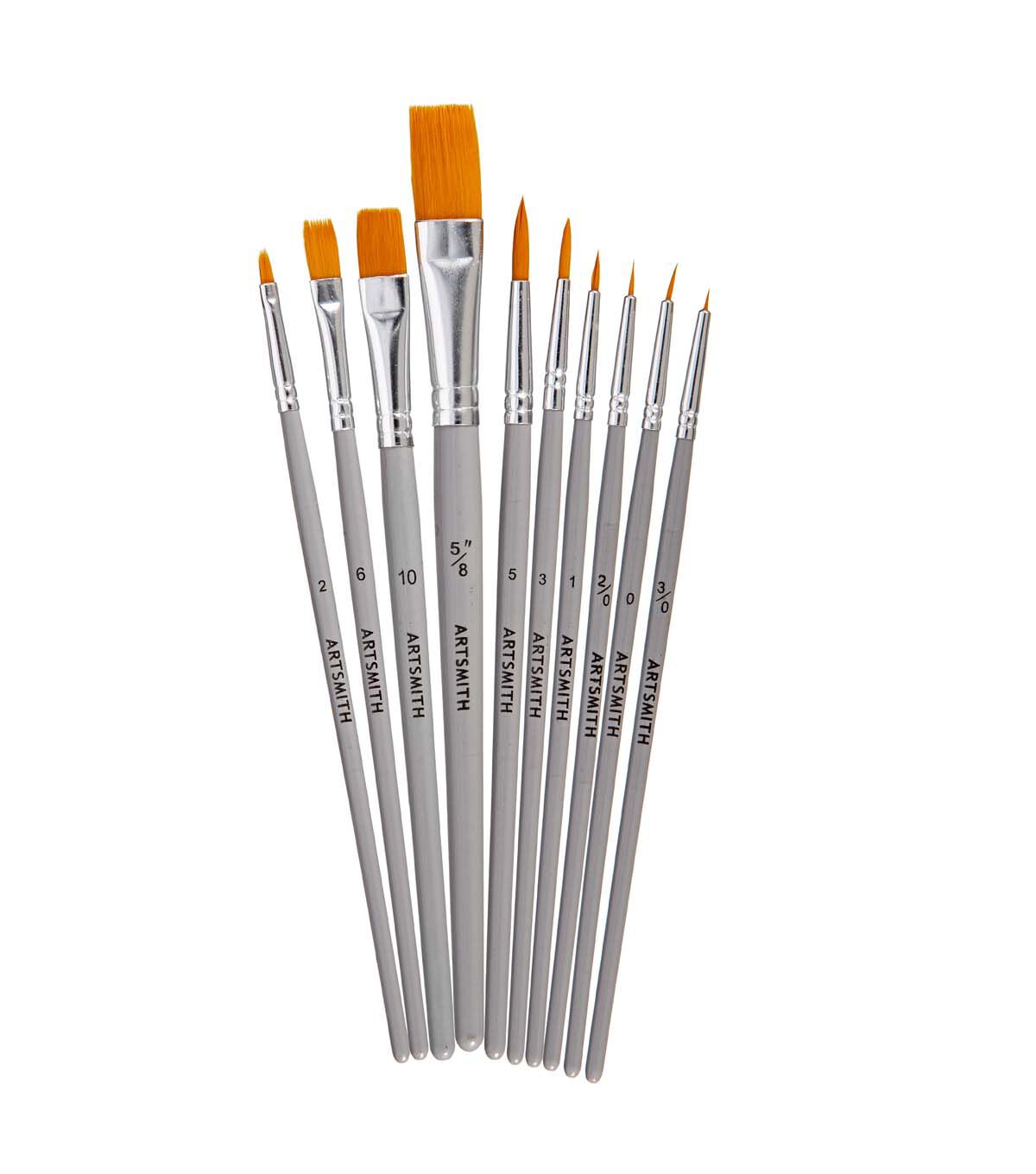 An assortment of brush shapes make these brush sets ideal for beginning artists.