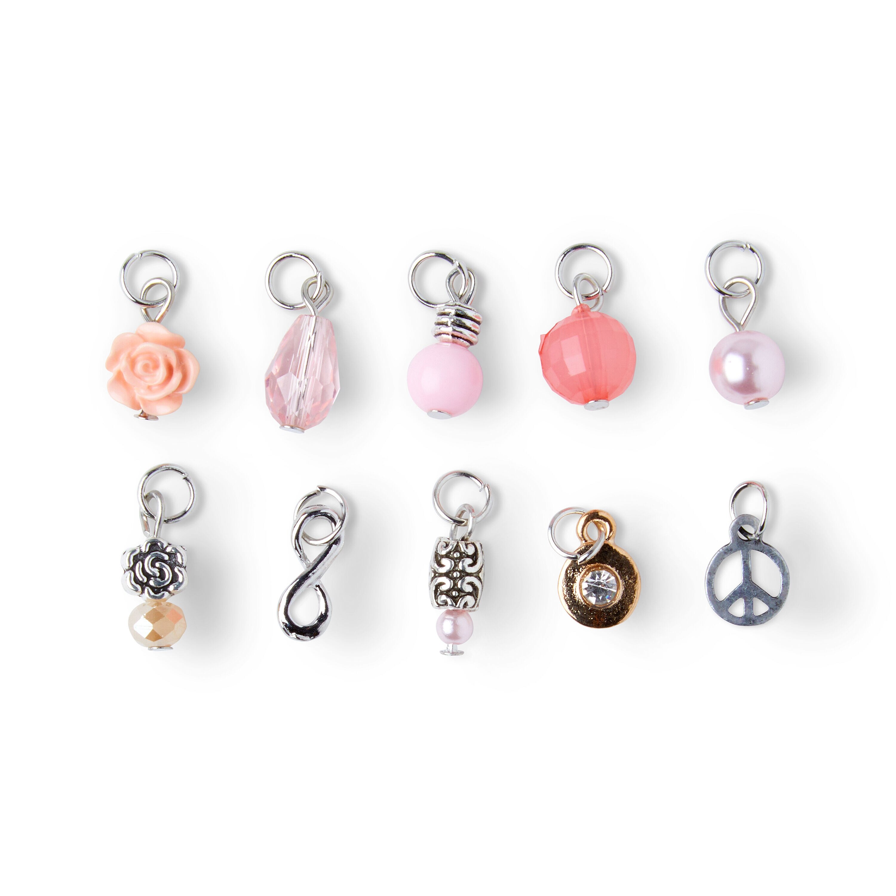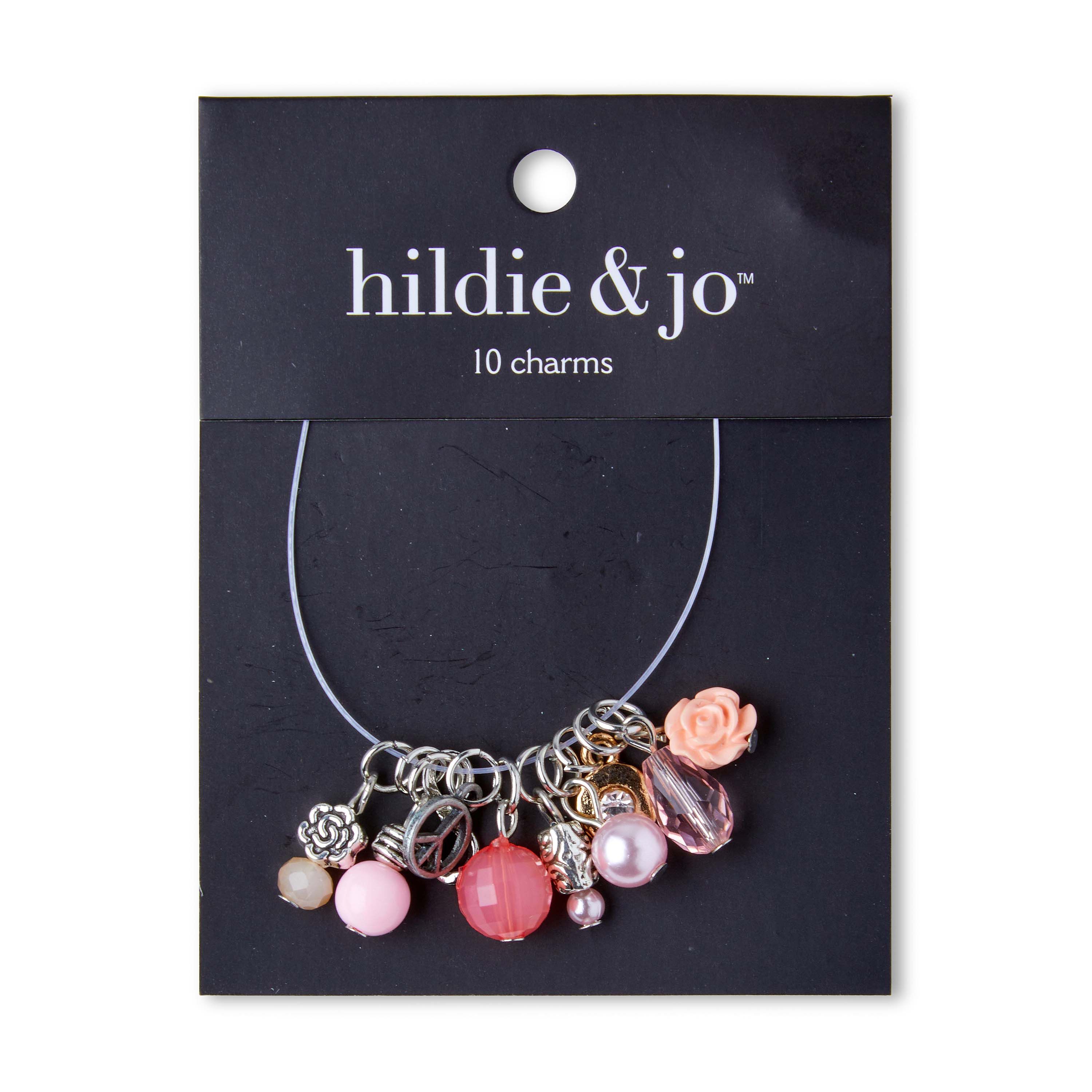 Design charming and elegant jewelry pieces using the hildie & jo Assorted Charms-Pink. Use the charms to lend a finishing touch to your DIY jewelry projects. You can add these to necklaces, earrings, bracelets, anklets and more. This pack comes with 10 unique, beautifully-designed charms.