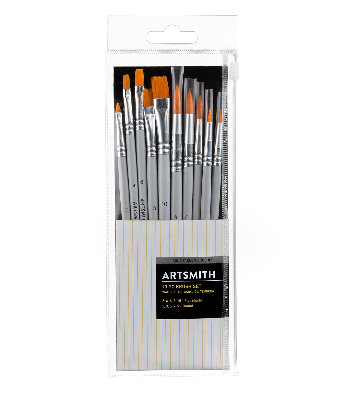 An assortment of brush shapes make these brush sets ideal for beginning artists.