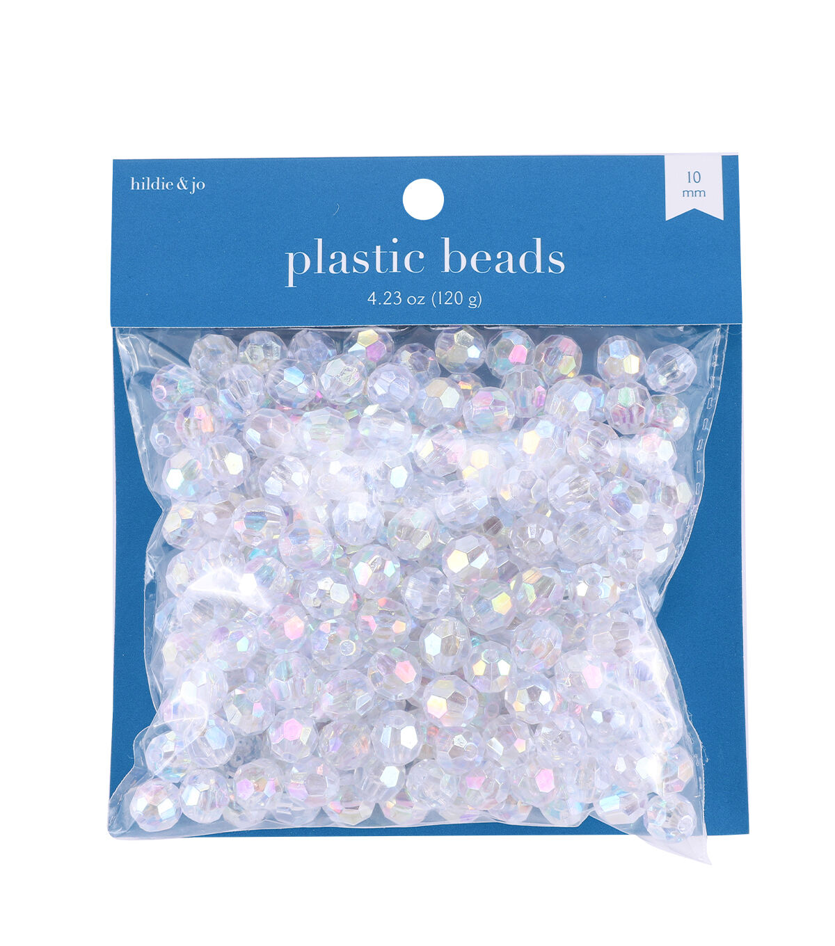 The hildie & jo Plastic Aurora Borealis Faceted Beads will be a lovely addition to your jewelry-making kit. This pack consists of faceted beads that sport a white, iridescent hue. Use these beads to create unique bracelets, anklets, necklaces and more. You can also team them with beads in contrasting shades or charms to make your creations more colorful and trendy.
