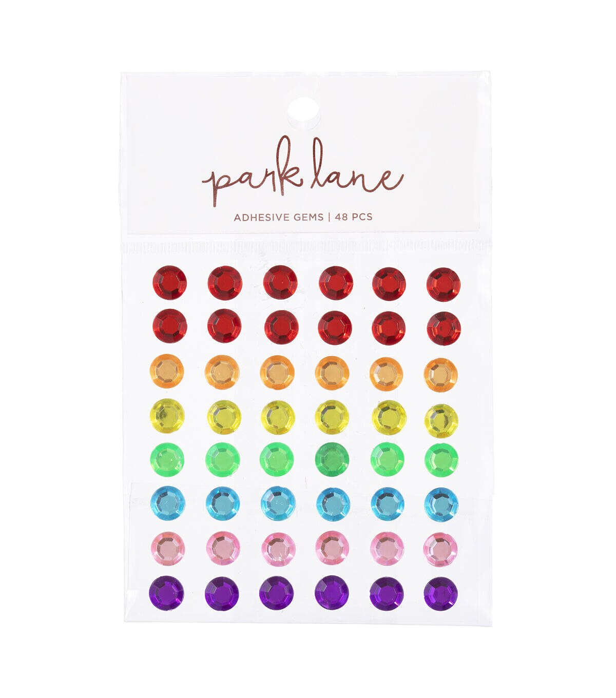 Add a rainbow of sparkle with the Round Rainbow Gems from Park Lane! Available in 3 sizes, each set of these bold colored gems includes 7 bright colors, ideal to embellish handmade cards, scrapbook projects, gift wrap and much more.