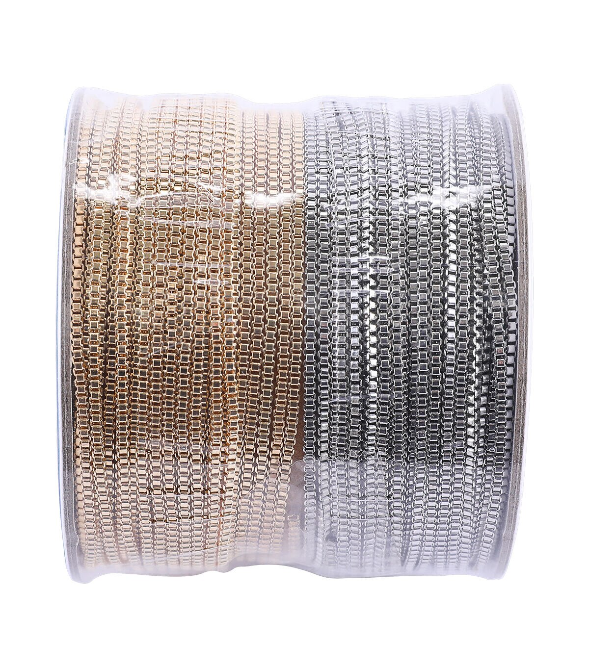 The hildie & jo Box Chain Spool - Gold & Silver will be a useful addition to your jewelry-making kit. This pack includes one spool consisting of two box chains measuring 10 yards in length in total. One chain sports a gold-toned finish while the other is silver. You can use them to create necklaces, bracelets and anklets for you and your loved ones.