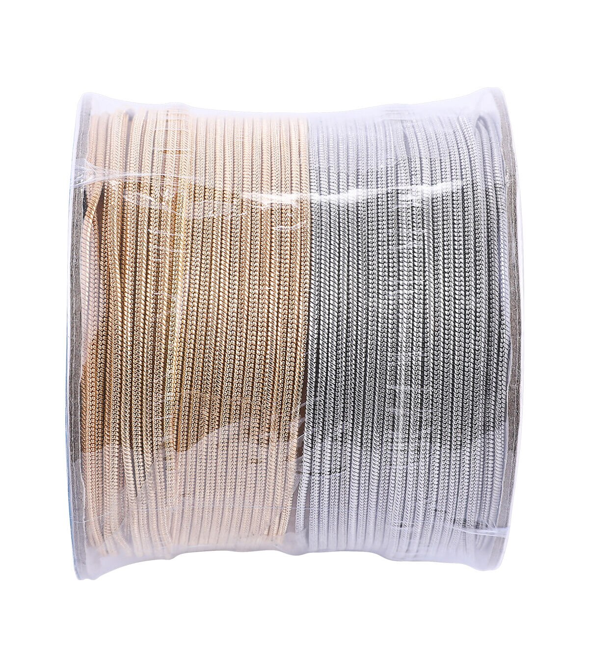 Design lovely pieces of jewelry with the hildie & jo Snake Chain Spool - Gold & Silver. This pack includes one spool of snake chains measuring 10 yards in total. One chain sports a gold-toned finish while the other a silver tone, and will make a great addition to your jewelry-making kit. Cut them into varying lengths and team them with charms to create lovely necklaces, bracelets and anklets.
