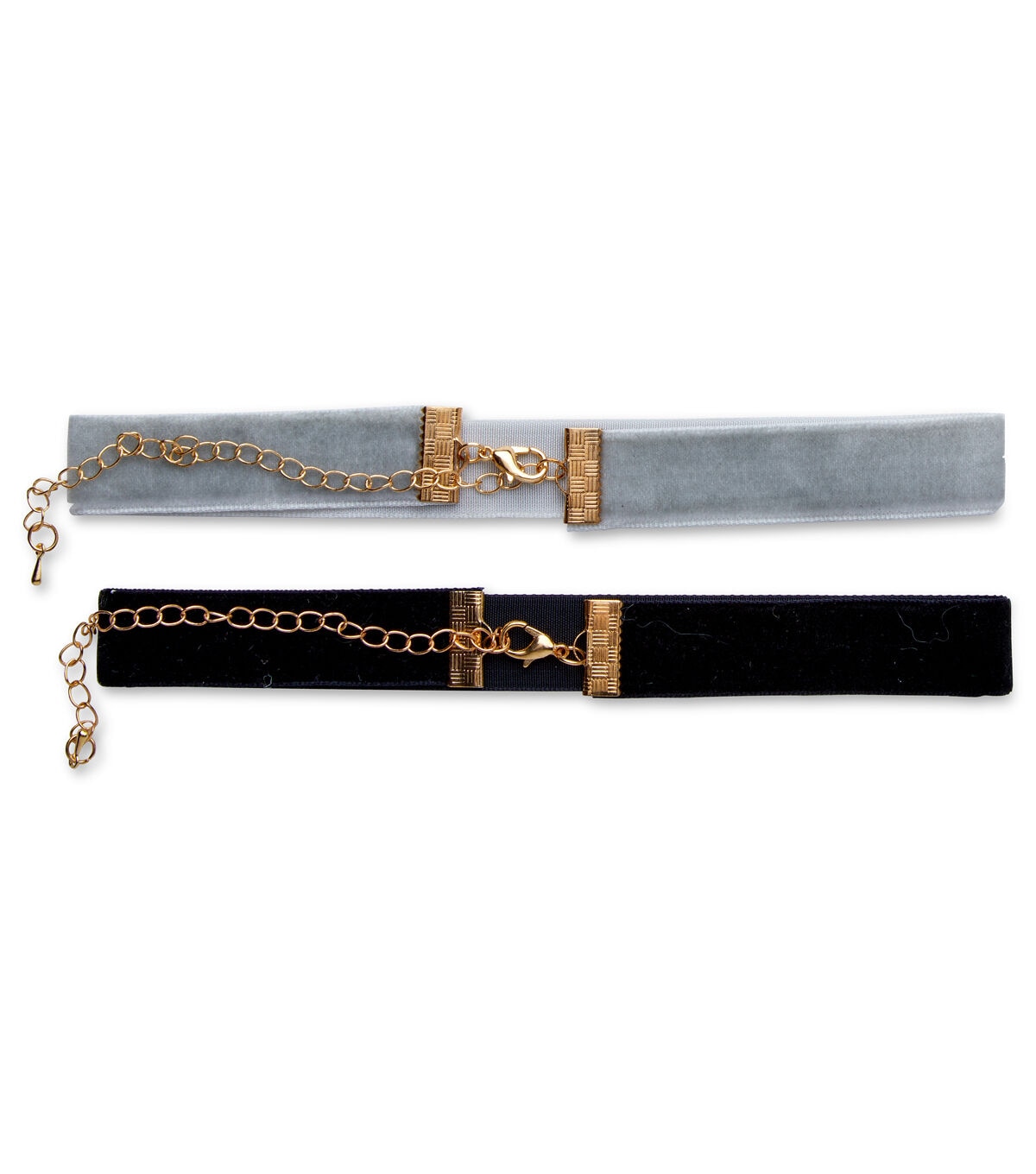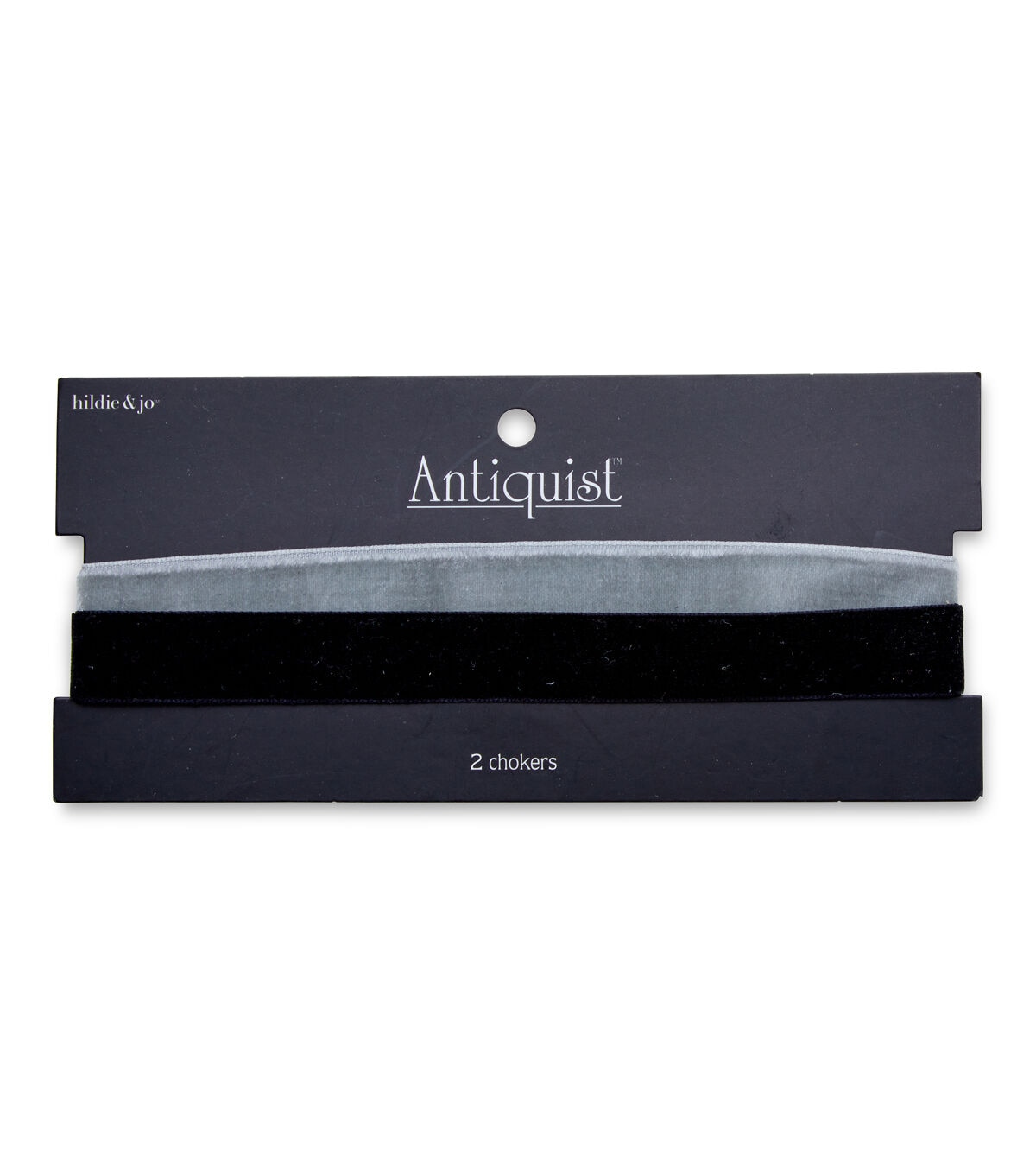 Echo your fad for fashion with trendy accessories like the hildie & jo Antiquist Chokers-Black & Silver. These elegant chokers are perfect for any look of the day or night. One choker is in black suede, while the other defines charm through a silver fabric. Add your favorite pin, charm or pendant and you are ready to go.