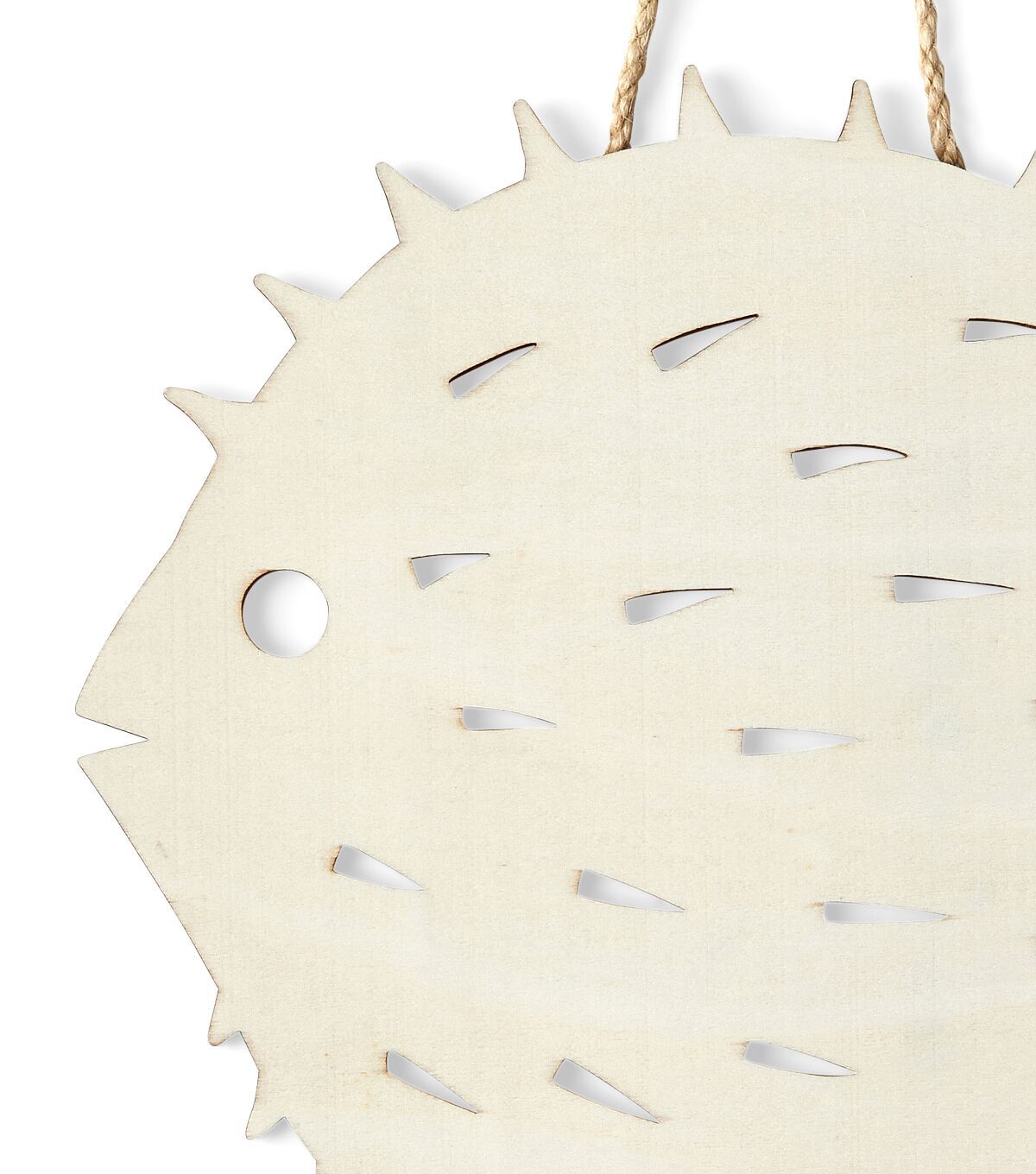 Add a touch of coastal charm to your home with this adorable unfinished wood blow fish wall decor. Measuring 11.5 inches by 9.2 inches, this piece is the perfect size to add a pop of color and whimsy to any room. The intricate laserwood design is TSCA Title VI compliant, ensuring that it is safe for your family and the environment.