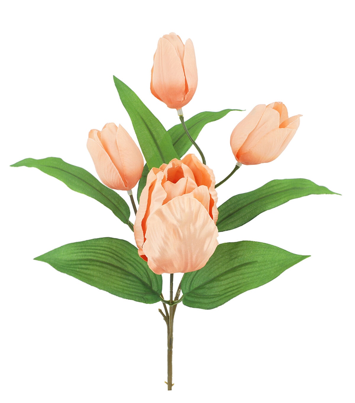Enhance your entryway, dining or living room decor with the Spring Peach Tulip Pick by Bloom Room. This decorative pick bears faux tulips in a beautiful peach hue. Green leaves add a lovely contrast to it. You can use it as a solo accent piece or make it a part of an existing DIY floral arrangement for visual flair.