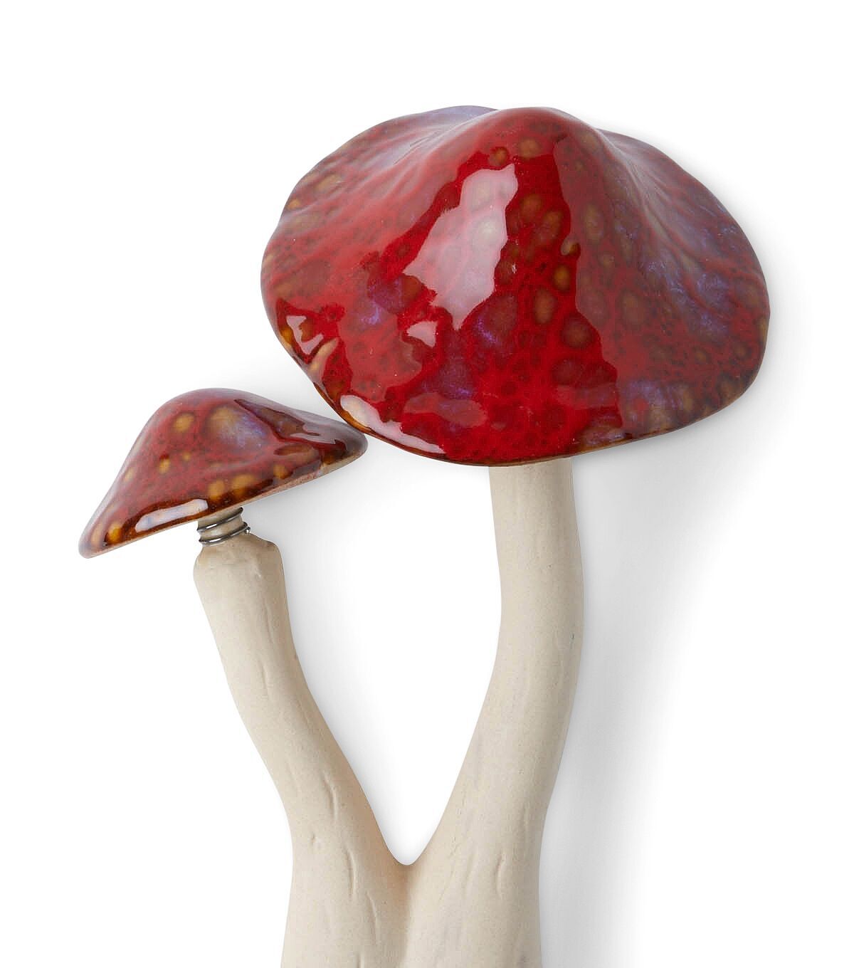 Complete your seasonal outdoor decor with attractive accents like the Spring Red Ceramic Mushrooms Yard Stake by Place & Time. This ceramic yard stake is shaped like mushrooms and is painted in realistic hues. Place it in the front yard along with coordinating mushroom stakes to create a display. You can also team it with other coordinating yard stakes for added visual appeal.