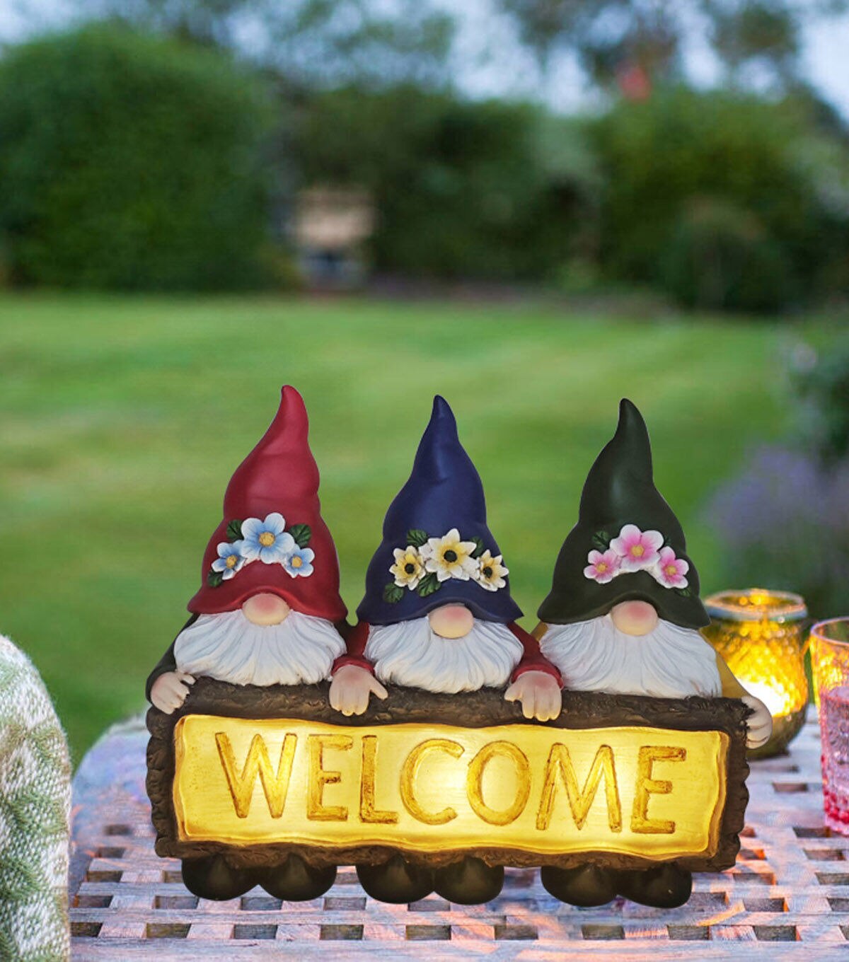 Give your guests a warm welcome by displaying the Spring Welcome 3 Gnomes Outdoor Solar Garden Statue by Place & Time along the pathway. This solar-powered garden statue is shaped like three gnomes holding a plaque flaunting the word ‘Welcome.’ It will be perfect to brighten up your outdoor space. You can also display it in your garden.