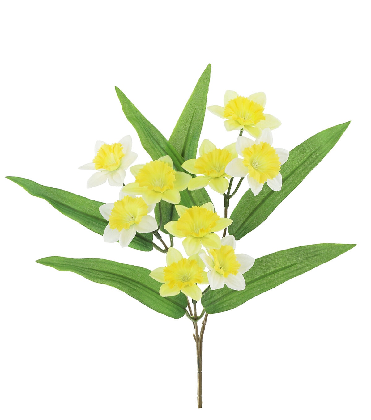 Welcome the season of new beginnings by adding the Spring Yellow Daffodil Pick by Bloom Room to your home decor. This faux floral pick is designed with daffodils in lovely yellow and white shades. Team it with coordinating floral bushes, sold separately, to create a unique arrangement. You can also use it to trim a spring-themed gift basket.
