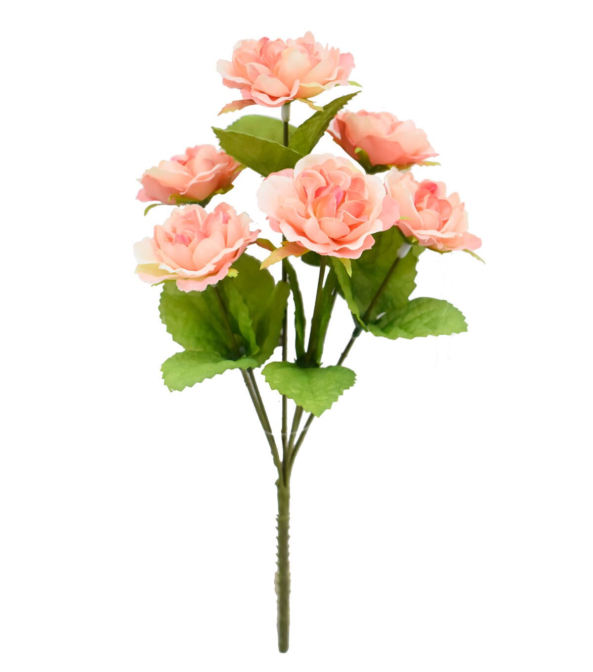 The Spring Peach Rose Bush by Bloom Room is sure to add springtime charm to your home decor. This floral bush is made of faux roses in a lovely peach hue and green leaves that lend it a contrasting touch. You can place it in a small cube glass vase and display it on the coffee table.