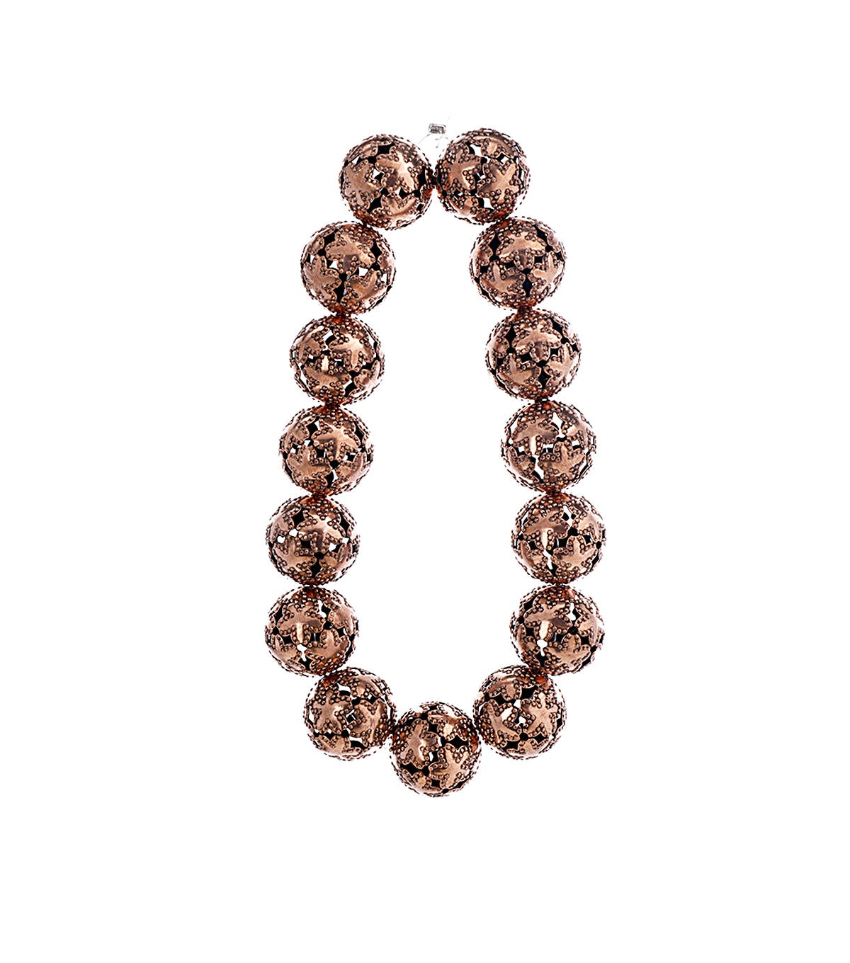 The jewelry maker in you will be ecstatic with the hildie & jo Round Metal Strung Beads with Filigree Cutout - Copper. This pack contains round metal cutout beads sporting a lovely copper tone. You can pair them with charms and glass beads to design pretty bracelets, anklets, bag charms, keychains, danglers, neckpieces and so much more.
