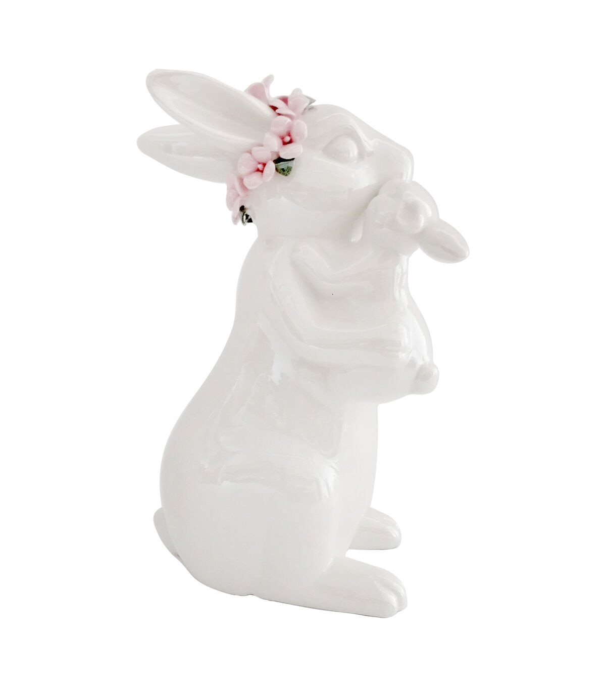 The Easter White Ceramic Mom With Baby Bunny by Place & Time is beautifully crafted and sure to add an interesting touch to your home decor. This ceramic accent resembles a mother bunny with a floral crown holding its baby. Spruce it up with a floral garland and make it a part of your Easter-themed display. It will also make a great festive gift basket to someone close.