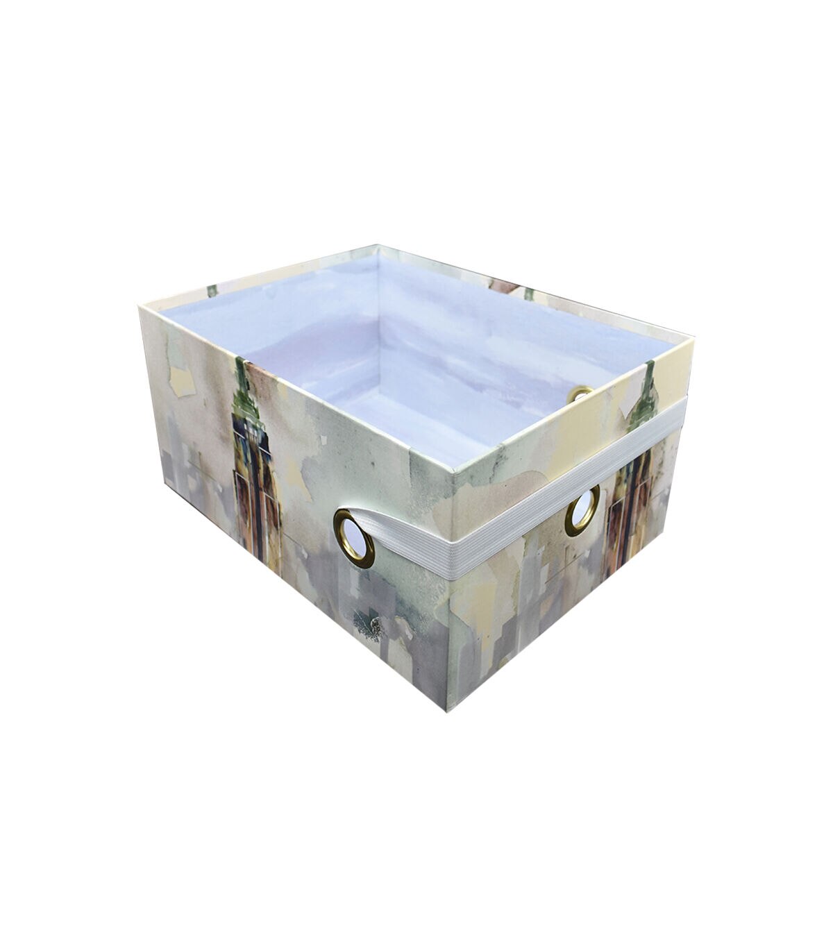 Make your loved ones happy by gifting delightful ornaments and chocolates in the Hudson 43 Medium Steamer Storage Box with Elastic - Landmarks. It flaunts a stunning image of the Empire State Building and comes with an elastic band closure. You can also use this steamer box to store your treasured photos, souvenirs and other trinkets.