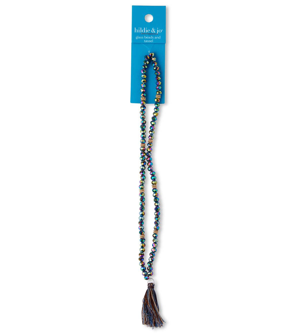 Take your jewelry-making skills to a whole new level with the hildie & jo Crystal Glass Strung Beads with Tassel - Multi. These beads are trimmed with a tassel and will lend the perfect finishing touch to your handmade creations. You can use them to design exquisite bracelets, bag charms, keychains or necklaces for your loved ones.