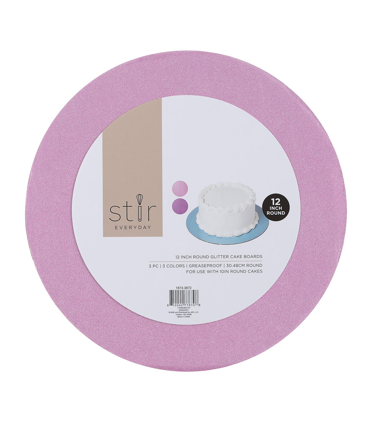 Your homemade cakes will stand out on the STIR Everyday Round Glitter Cake Boards. These round cake boards flaunt lovely shades with a glitter finish. They are greaseproof and perfect for use with 10-inch cakes. You can also use them to display delicious cupcakes or pastries at a party or gathering.