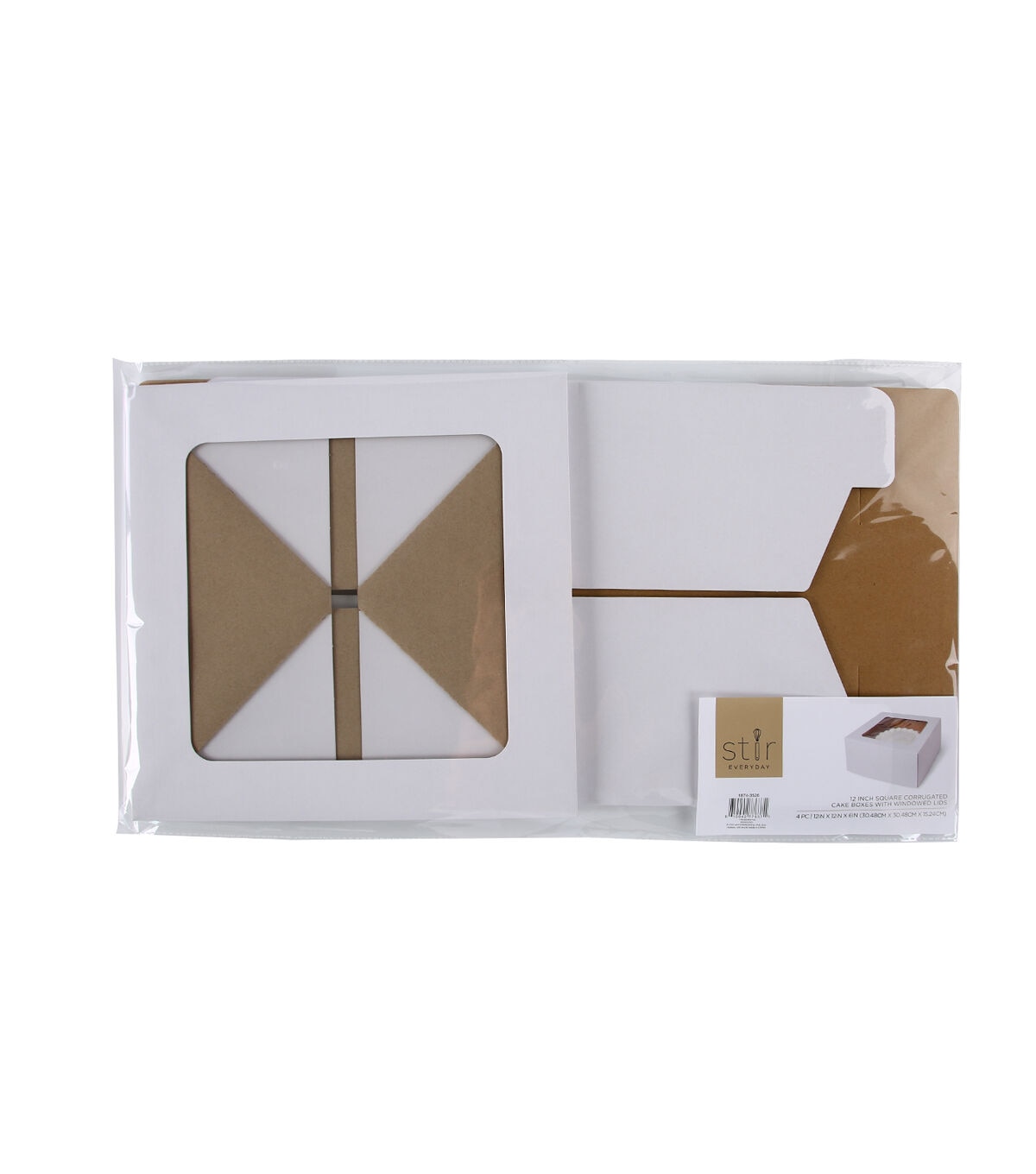 Display homemade sweet treats in the STIR Everyday Square Corrugated Cardboard Cake Boxes with Windowed Lids. Made of corrugated cardboard, these cake boxes are sturdy. They come with windowed lids that will give you a glimpse of the stored baked goods. You can use them for cakes, muffins, cupcakes and more.