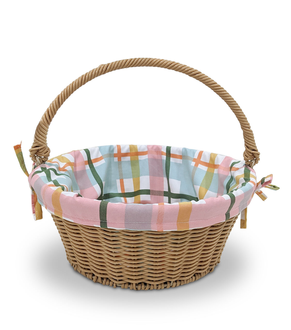 Make this Easter holiday even more special with the 12" Willow Easter Basket by Place & Time. This beautiful basket is perfect for filling with various toys and assorted candies to give as an Easter gift. It's also great for using during Easter egg hunts! The removable pink plaid liner adds a pop of color and can be easily washed. Plus, this basket can also be used as a great storage solution for kids and adults who love bunnies.
