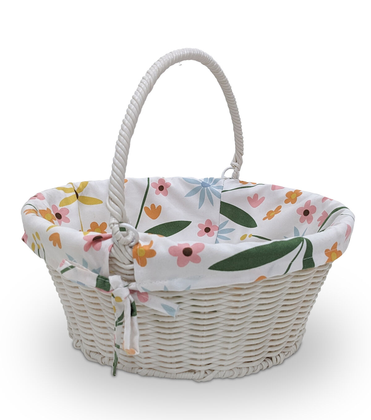 12" Woven Easter Basket With Yellow & Orange Floral Liner by Place & Time