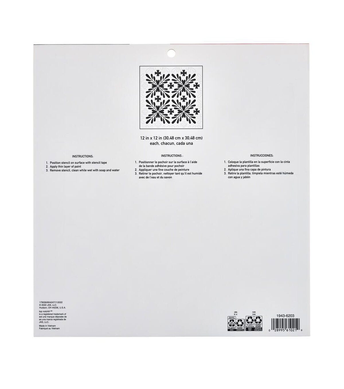 - Stencil Size: 12" x 12"