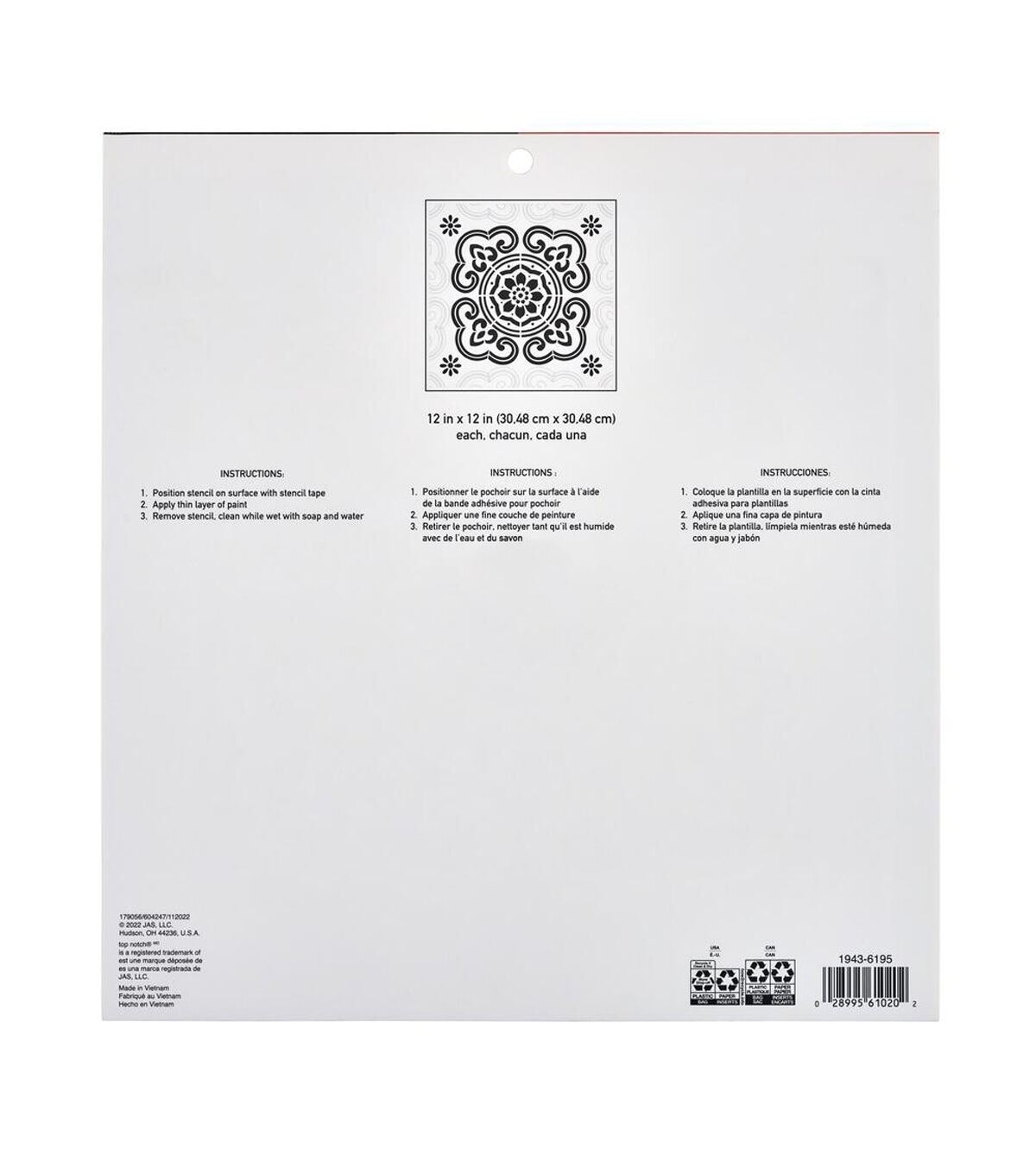 - Stencil Size: 12" x 12"