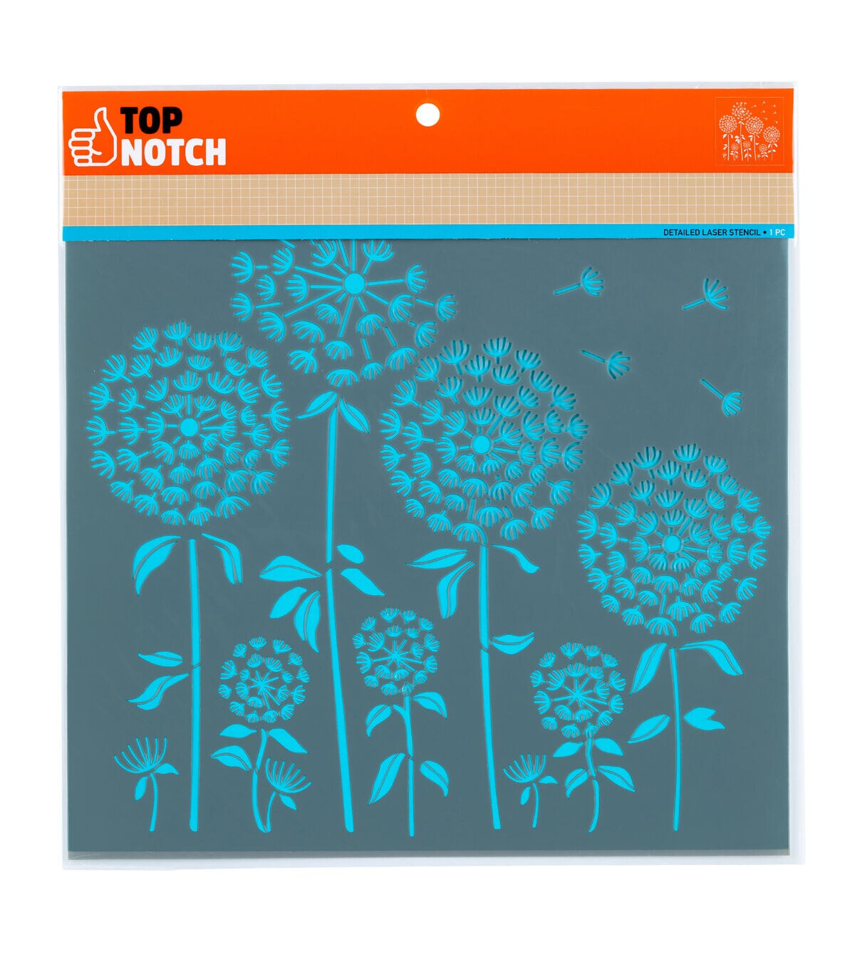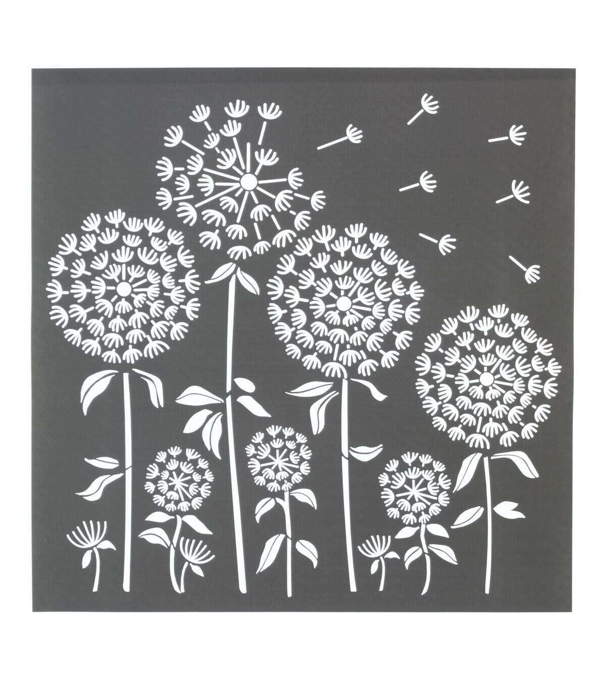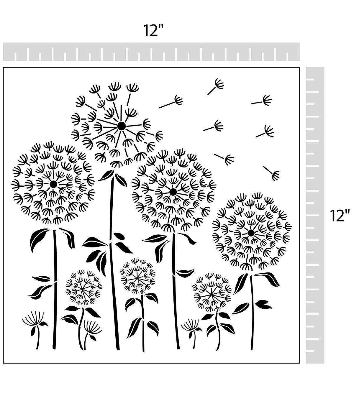 Bring the joy of springtime to your projects with the Top Notch Dandelion Stencil Sheet. This 12" x 12" stencil sheet features a field of dandelions in various sizes for added floral flair to your crafts. Durable and reusable, this mylar stencil sheet is easy to clean up with mild soap and warm water. Easily stencil simple and whispy dandelions with the Top Notch Dandelion Stencil Sheet. Bring the joy of springtime to your projects with the Top Notch Dandelion Stencil Sheet. This 12" x 12" stencil sheet features a field of dandelions in various sizes for added floral flair to your crafts. Durable and reusable, this mylar stencil sheet is easy to clean up with mild soap and warm water. Easily stencil simple and whispy dandelions with the Top Notch Dandelion Stencil Sheet.