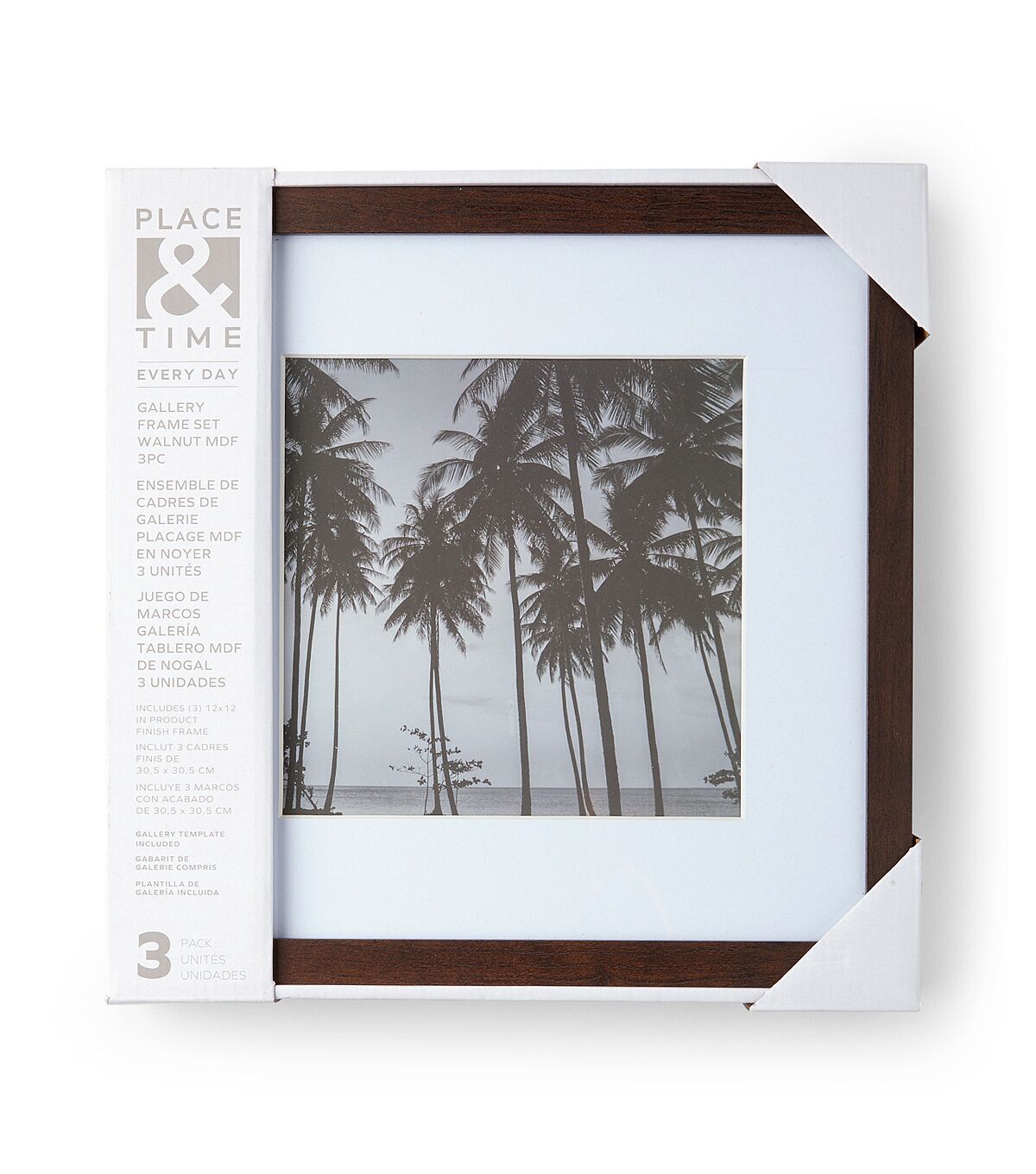 Elevate your home decor with the Place & Time Walnut Gallery Frame Set. This set of three frames is perfect for showcasing your favorite memories or art pieces. The deep walnut finish exudes sophistication and warmth, making it a versatile addition to any modern or traditional interior. Each frame is adorned with a durable 0.79-inch moulding, crafted with refined craftsmanship that signifies durability and longevity.