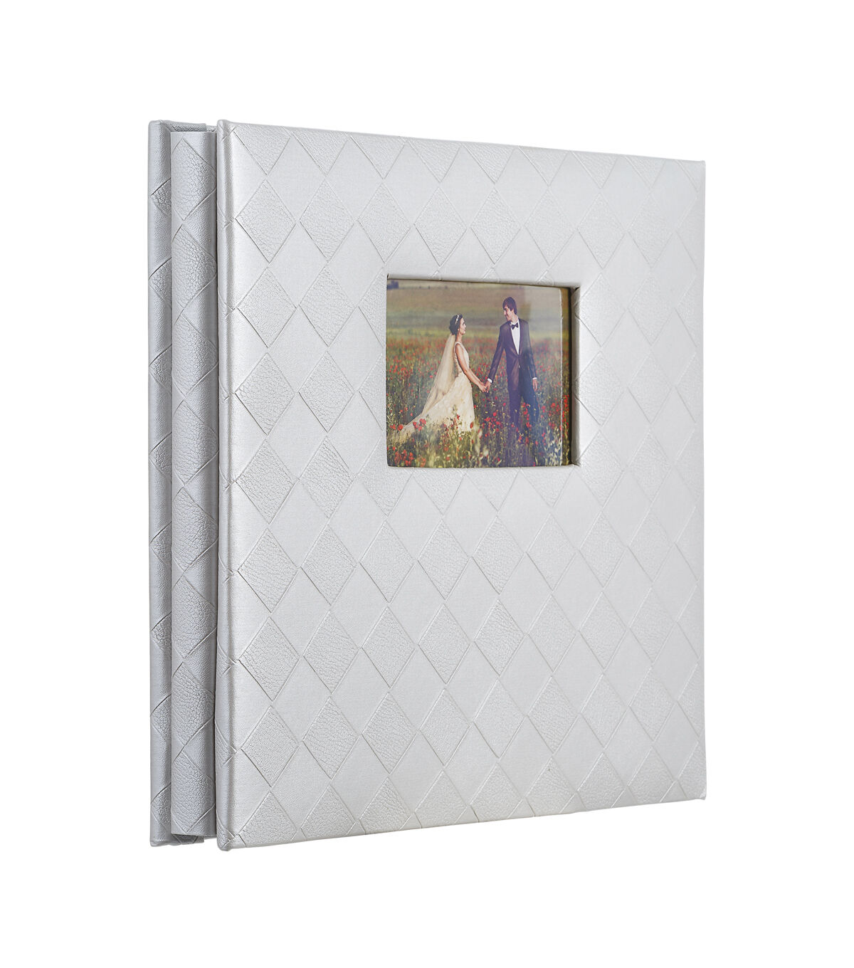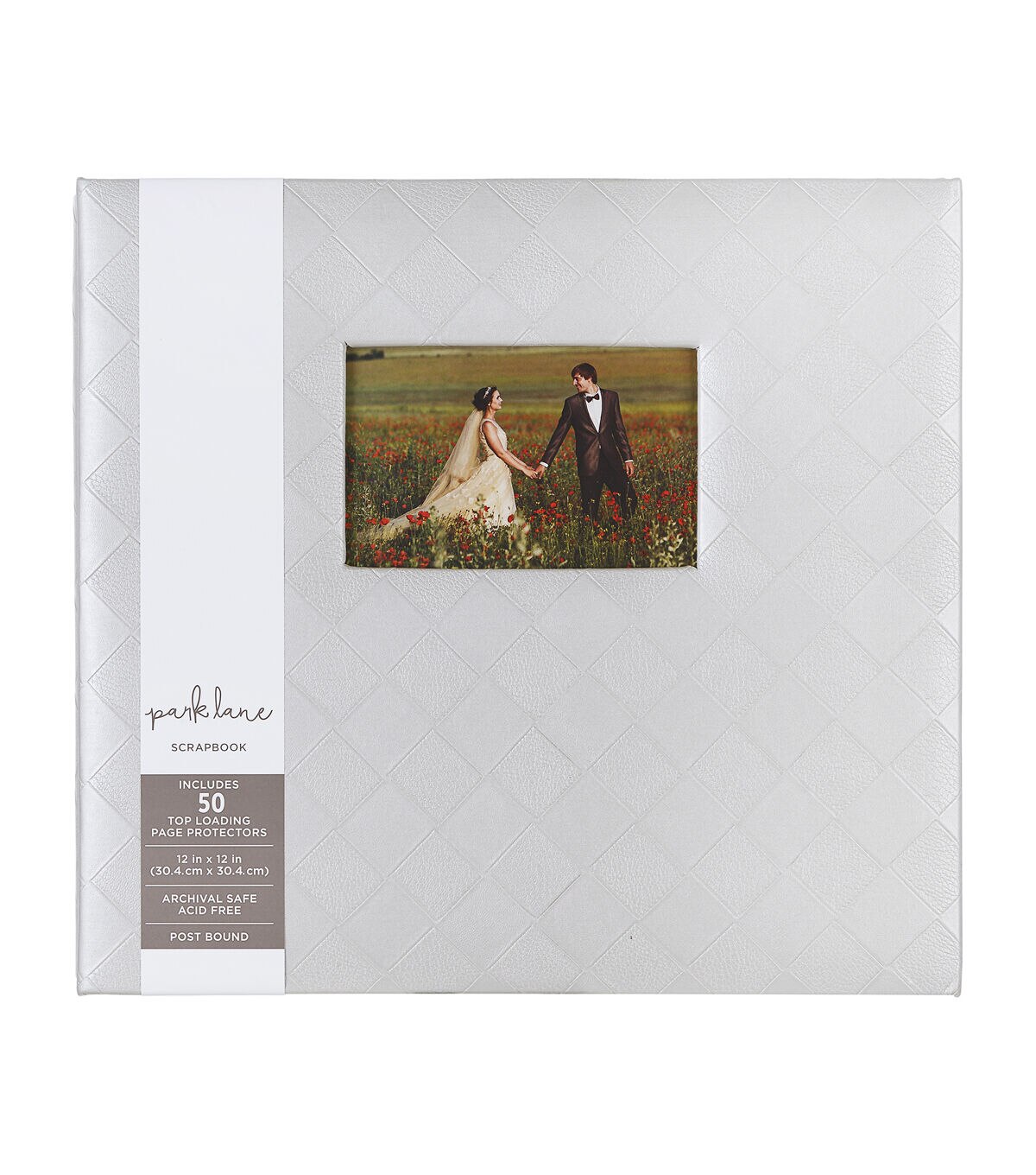 Keep your precious memories safely stored in this Park Lane Scrapbook Album-Pearl Gray Diamonds. It features a pearl gray shade with diamond patterns and comes with a small photo opening to display your favorite picture on the cover. The scrapbook includes 50 page protectors perfect to house photographs from any memorable occasion.